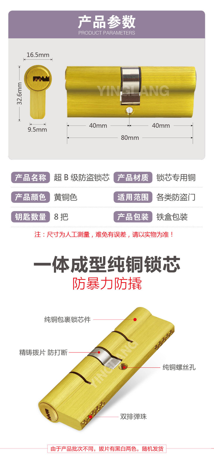 〖A339〗超B级双排曲线锁芯(80中)