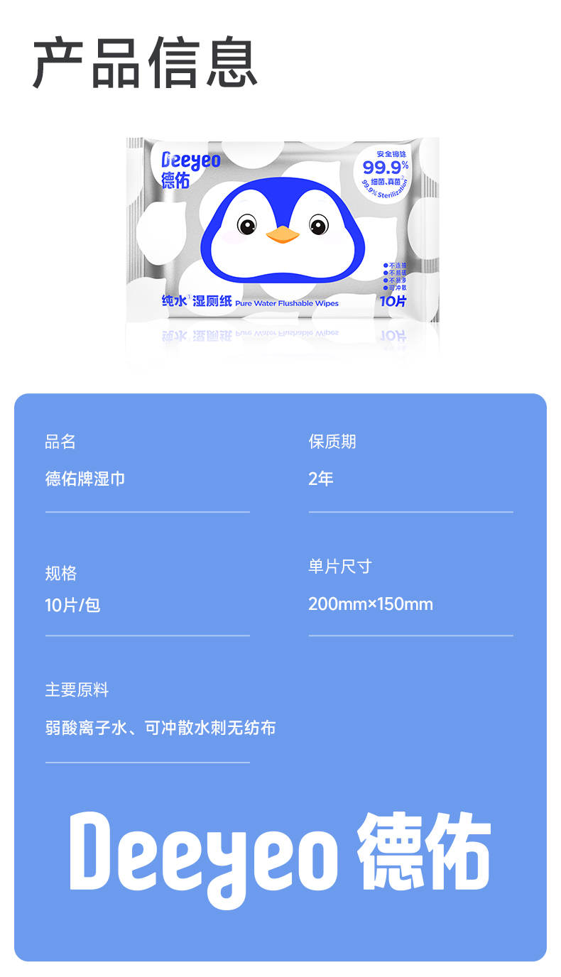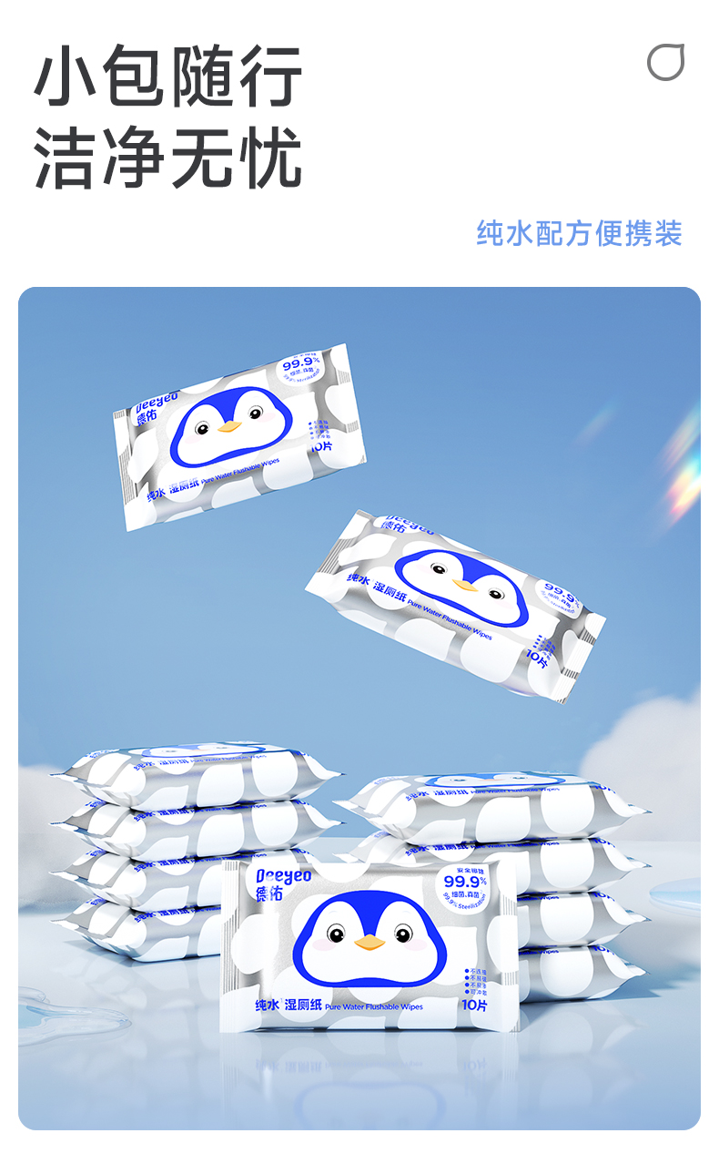 【GX】德佑纯水湿厕纸便携小包纯水无添加安心随身装10抽*20包