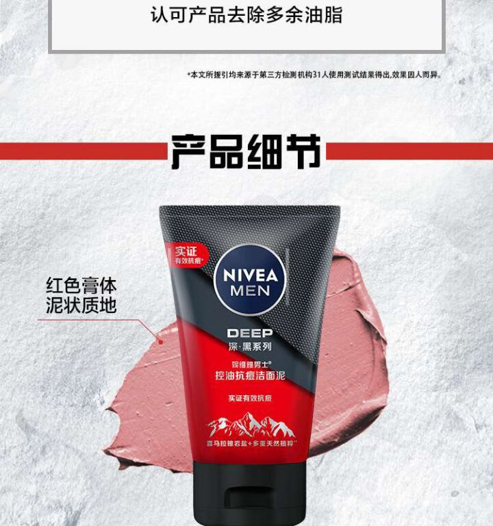 妮维雅男士控油抗痘洁面泥100g【30171106】