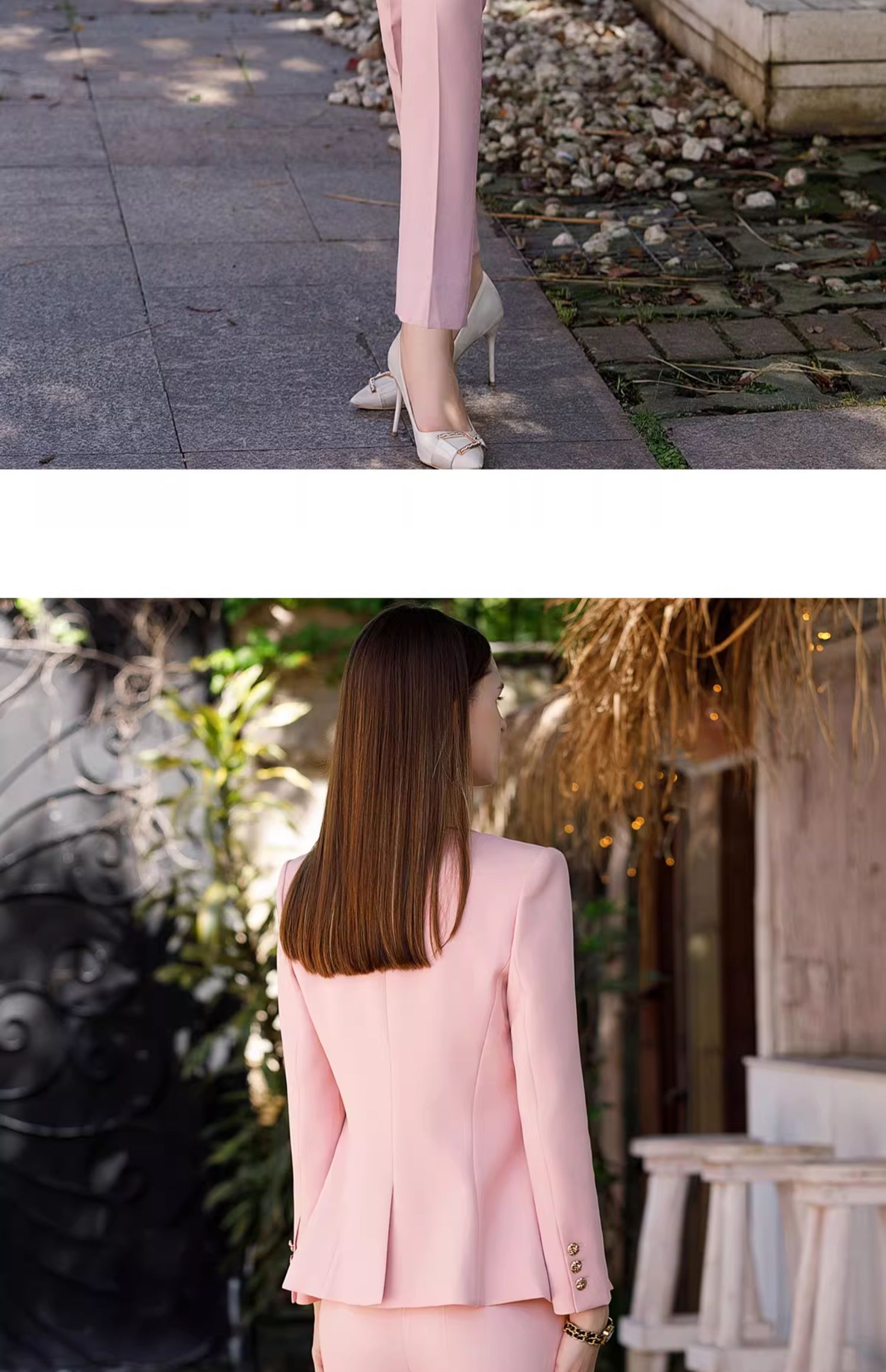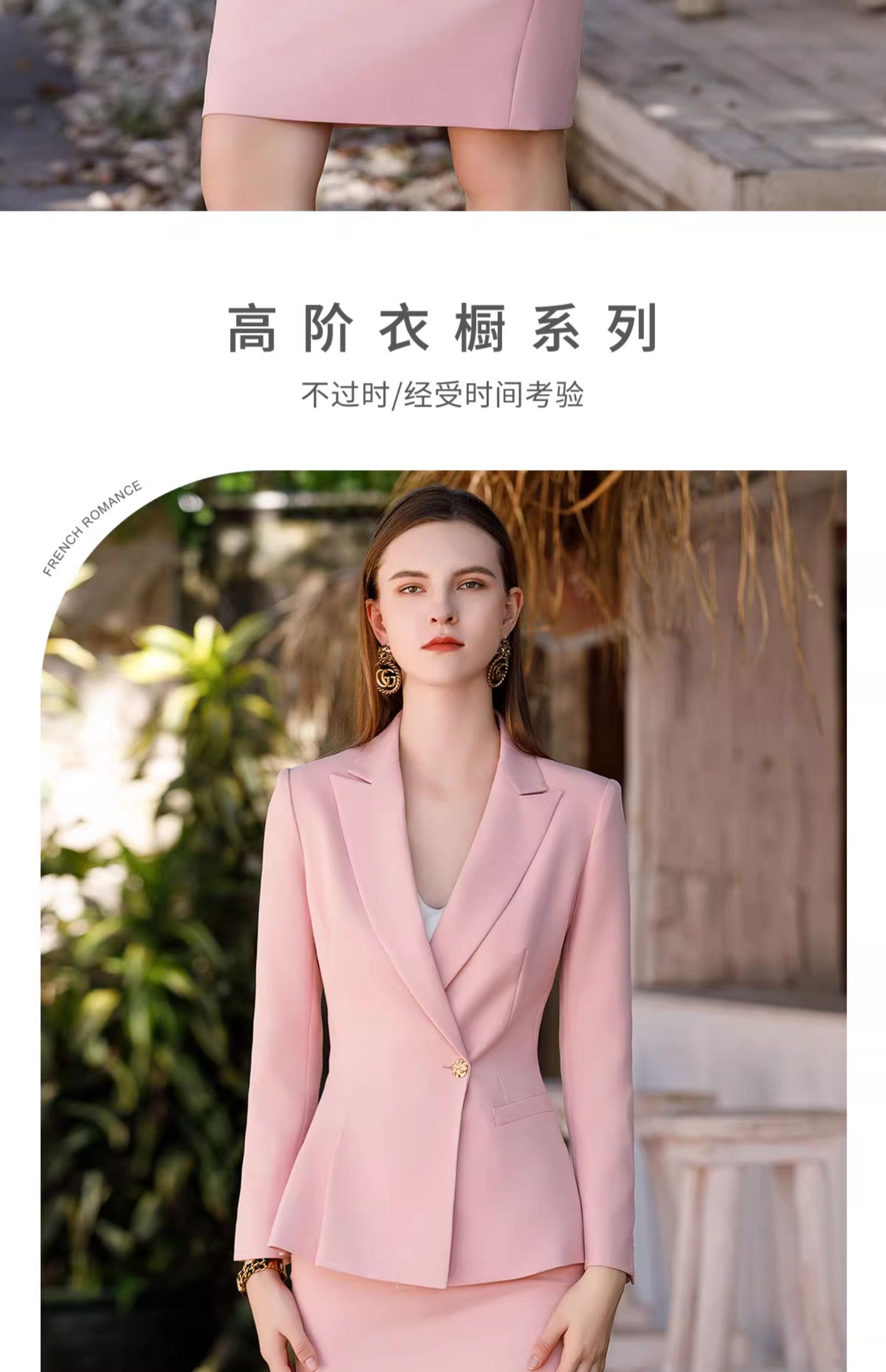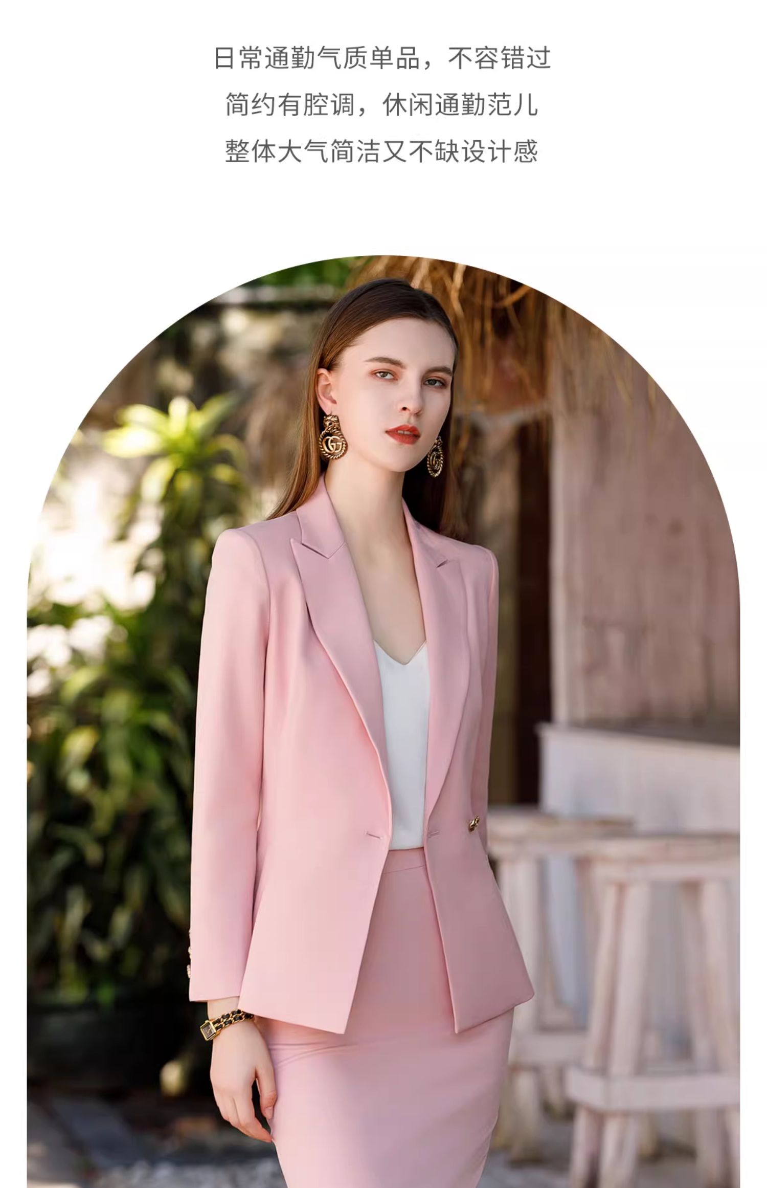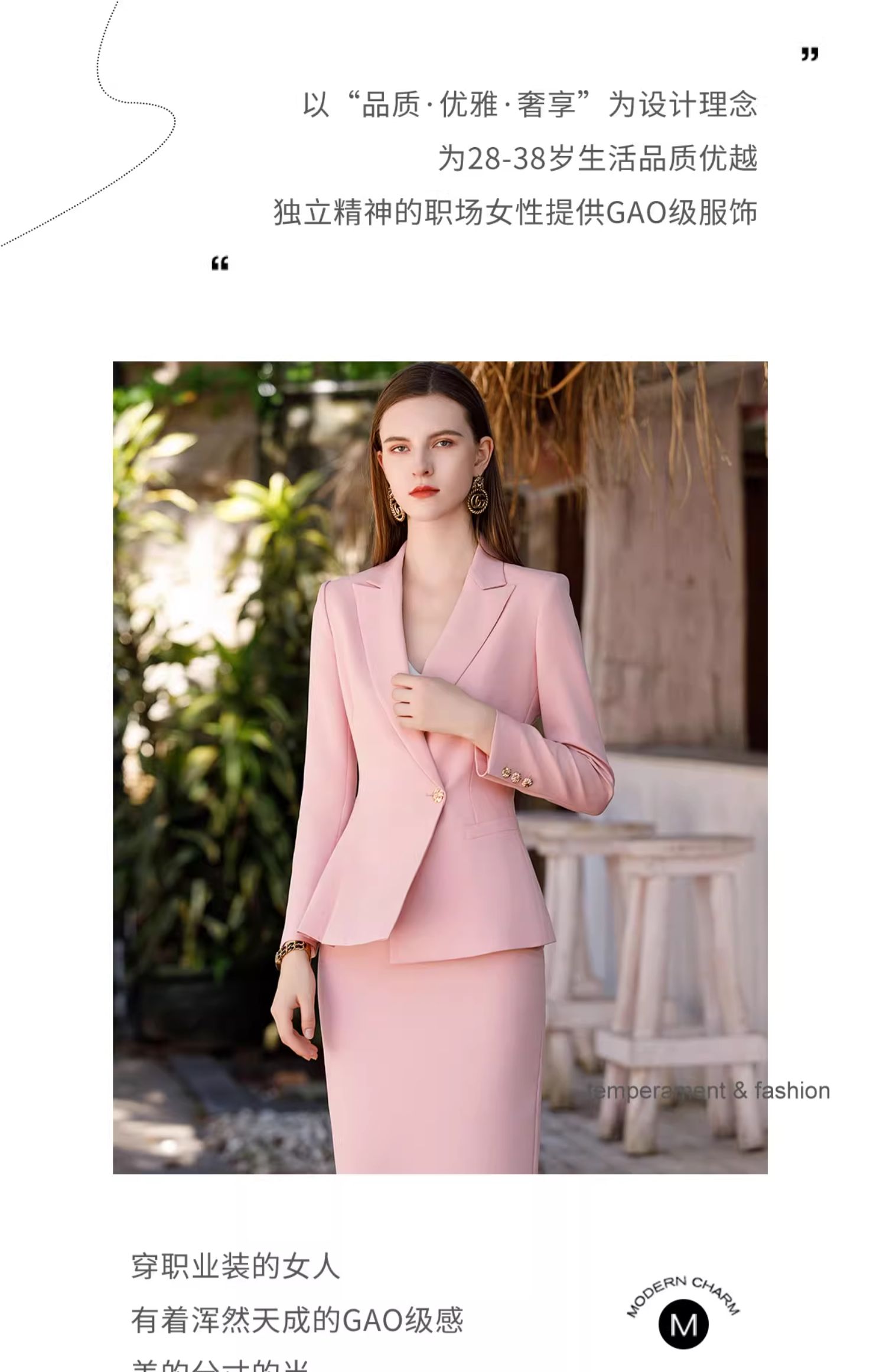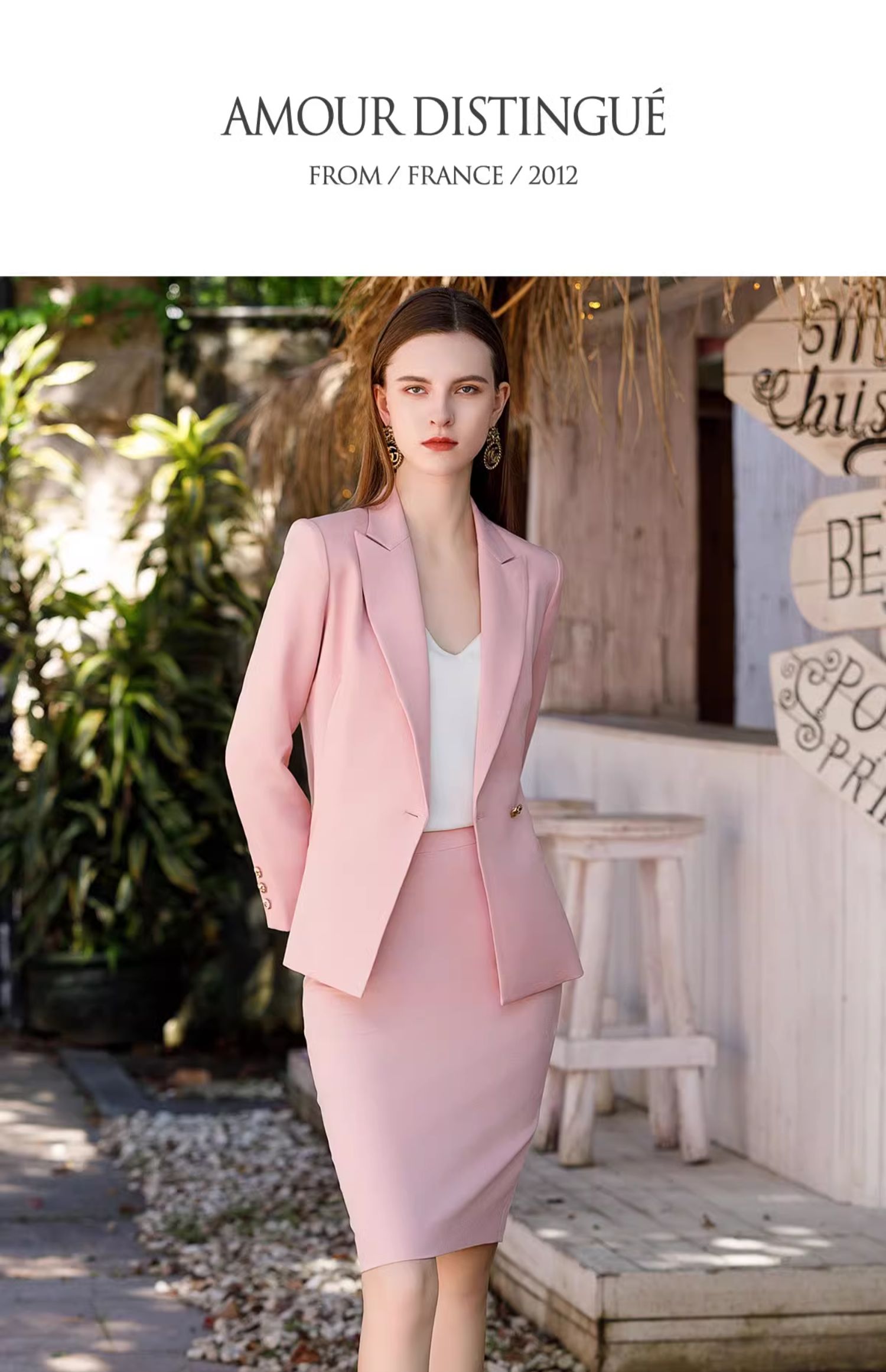 AD时尚兰花粉色西装套装女2023新款秋季西服外套半身裙工装两件套