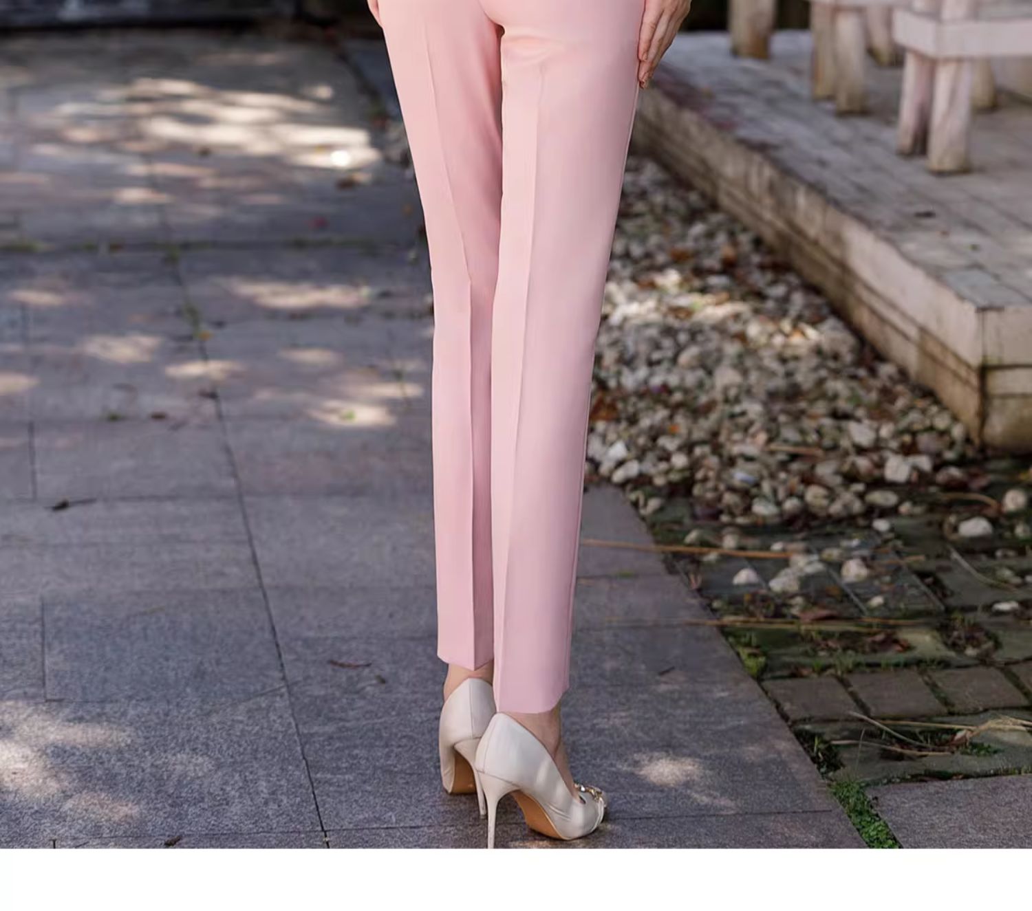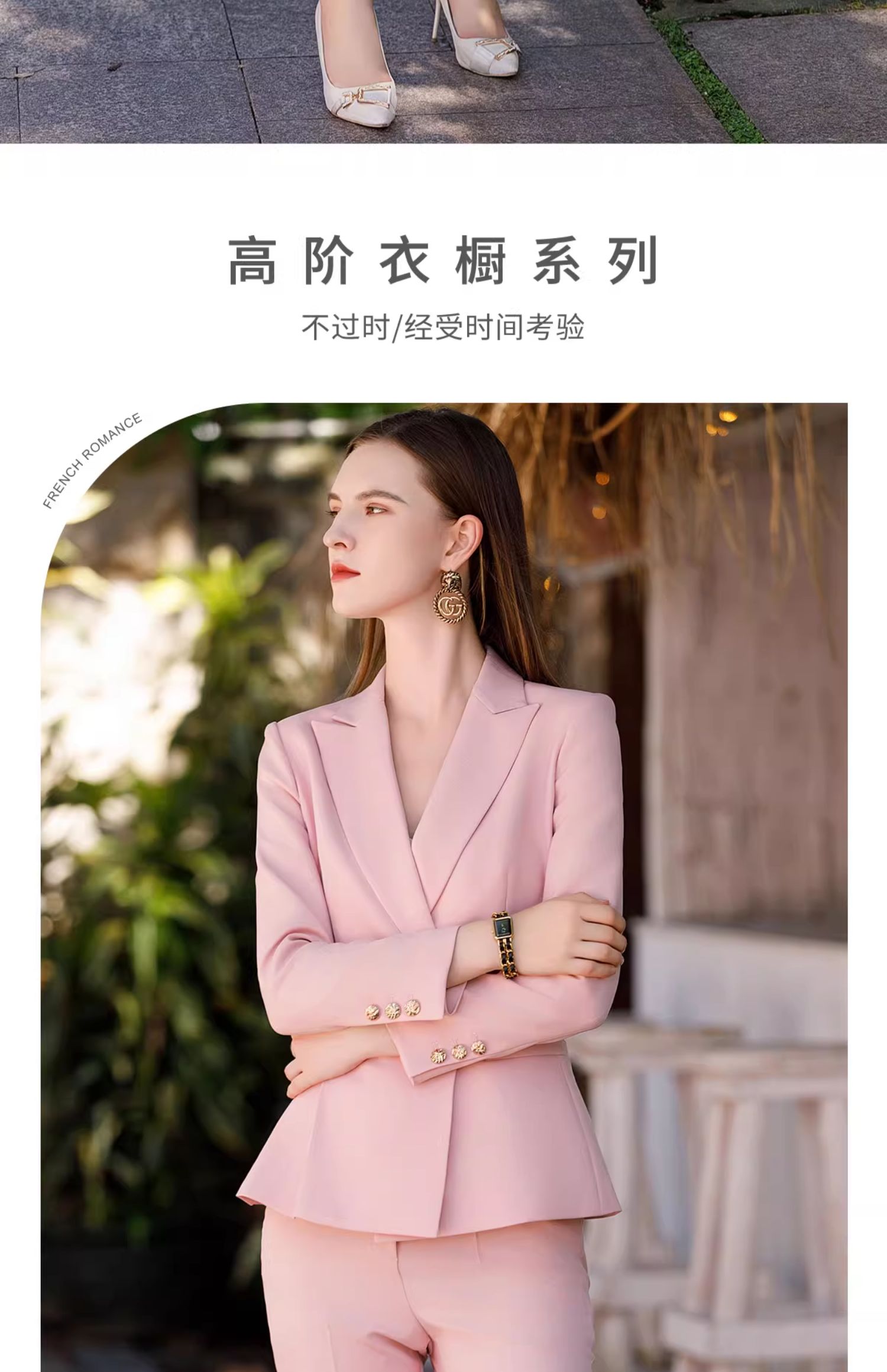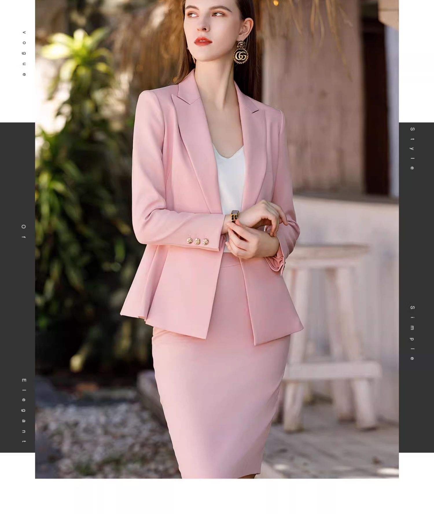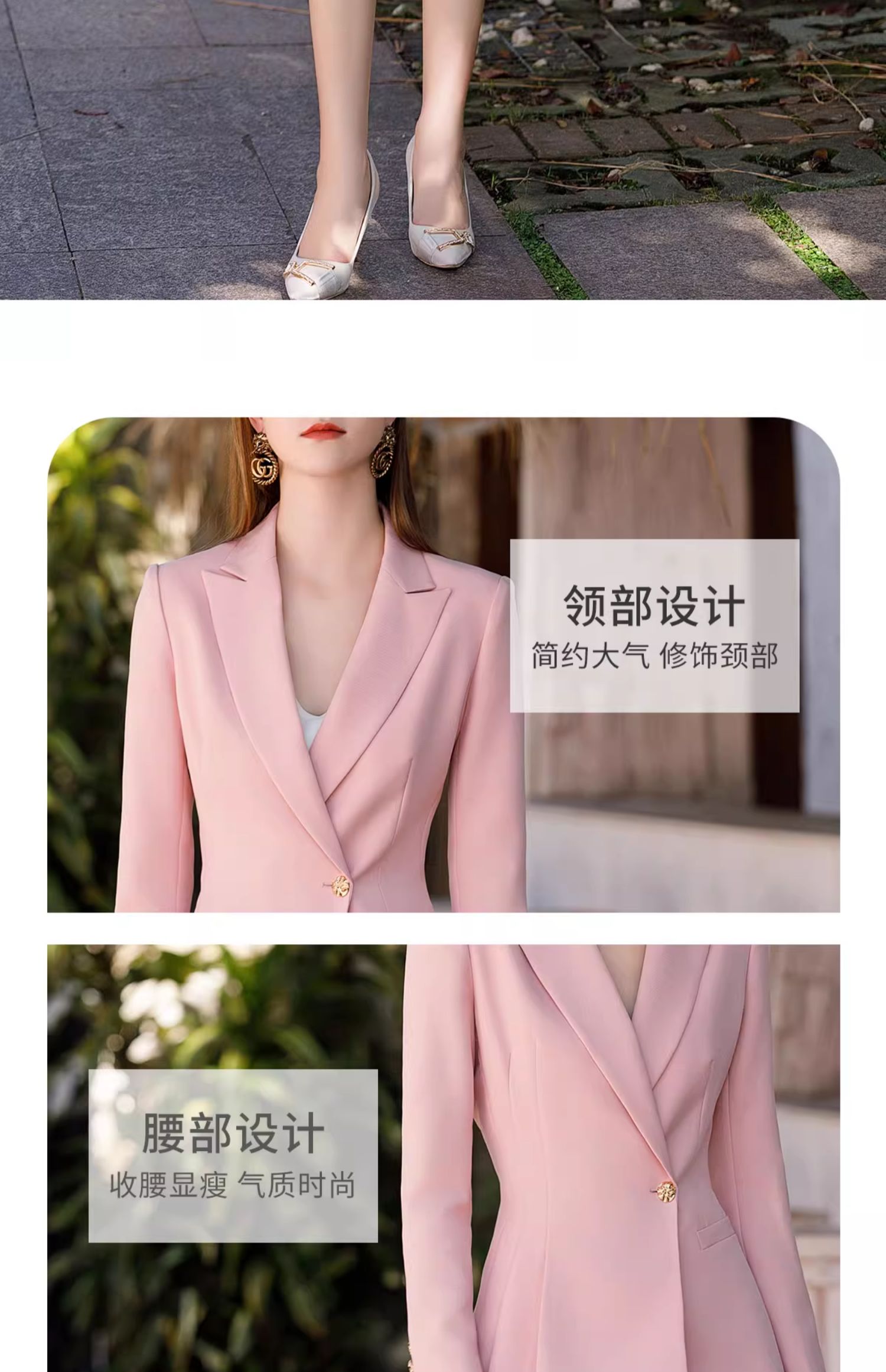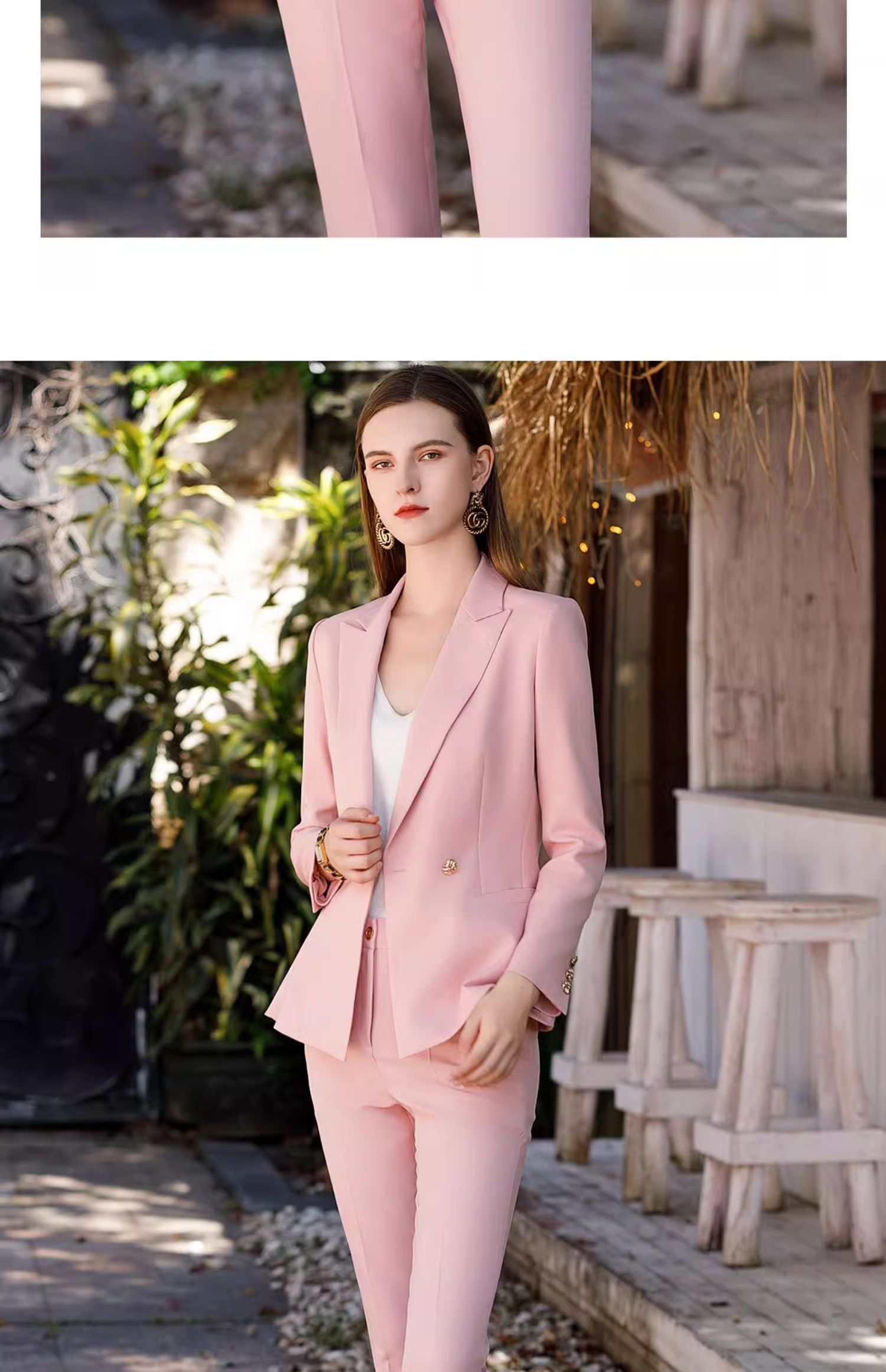 AD时尚兰花粉色西装套装女2023新款秋季西服外套半身裙工装两件套