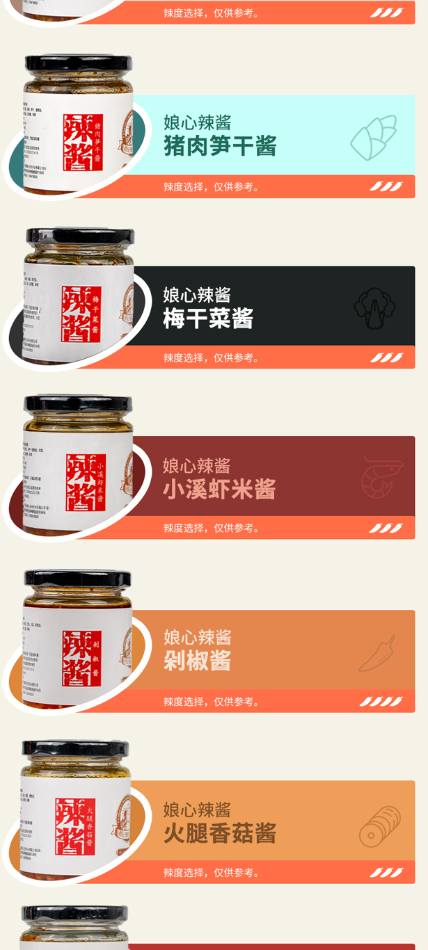 父母都是农民,种了好多生态辣椒,却不懂销路,很多烂在了地里。他们先在朋友圈试着卖,家里的手工辣酱都很受欢迎,于是,夫妻俩创办了“娘心生态农业有限公司”。
