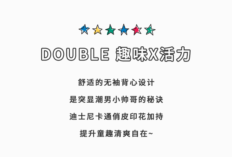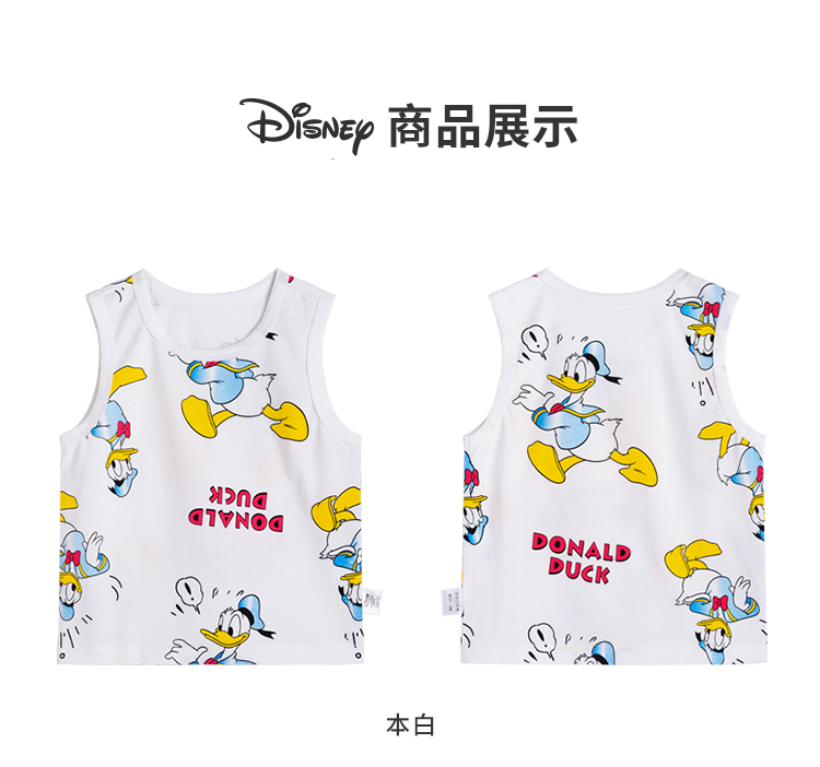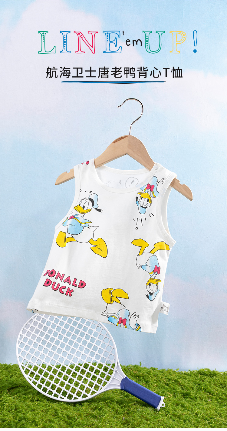 迪士尼童装 男童唐老鸭卡通背心T恤夏季新款俏皮印花短袖