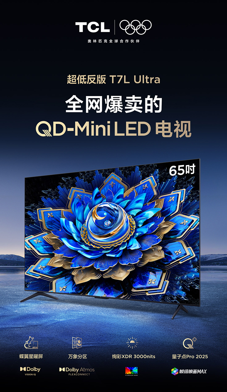 【新品上市】TCL电视 65T7L Ultra 65英寸 QD-Mini LED 蝶翼星曜屏 万象分区 绚彩XDR 3000nits 超薄电视