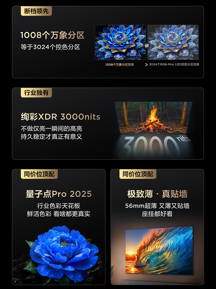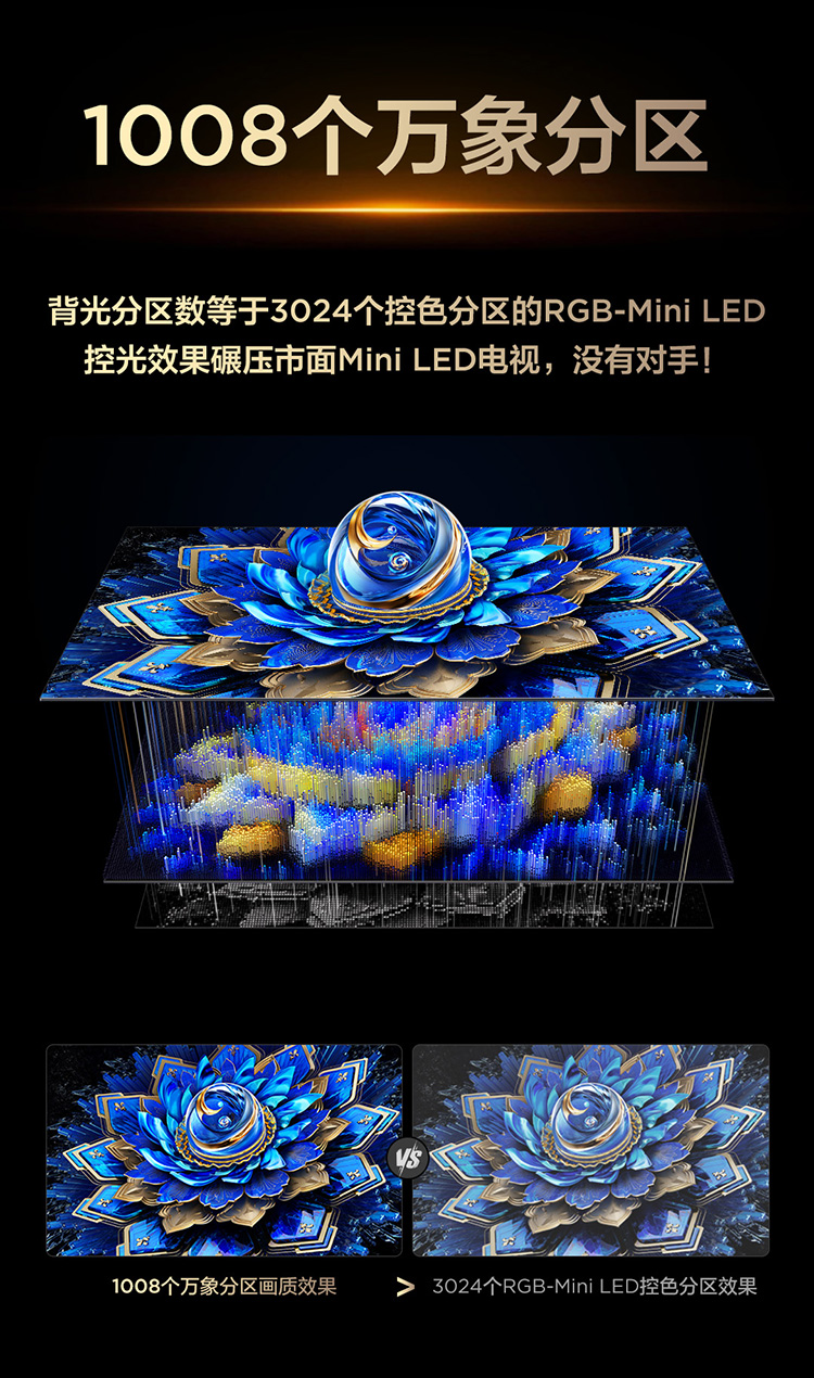 TCL电视 65T7L Ultra 65英寸 QD-Mini LED 蝶翼星曜屏 万象分区 绚彩XDR 3000nits 超薄电视