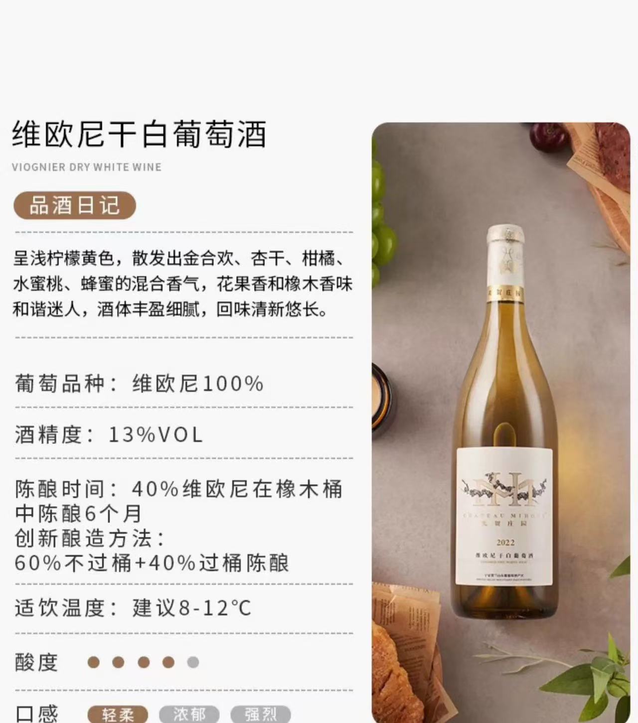 美贺庄园维欧尼干白|中国艺术酒庄美贺明星酒款,维欧尼干白,刚刚获得了中国最佳维欧尼葡萄酒,白花、西柚、蜜瓜、桃杏气息扑面而来,入口油润丰腴,清爽活泼迷人的酸度;但凡品过之人,都有“独家记忆~