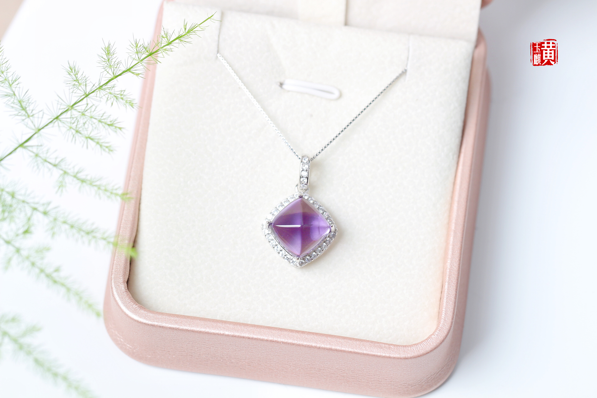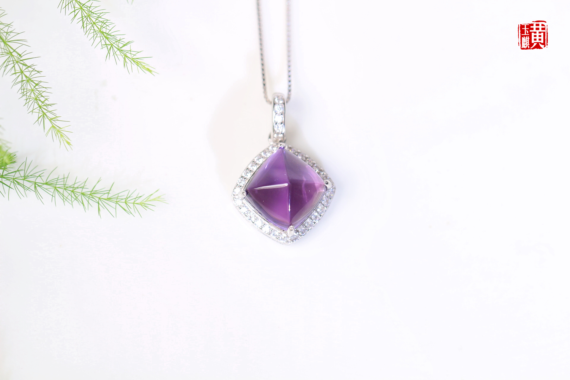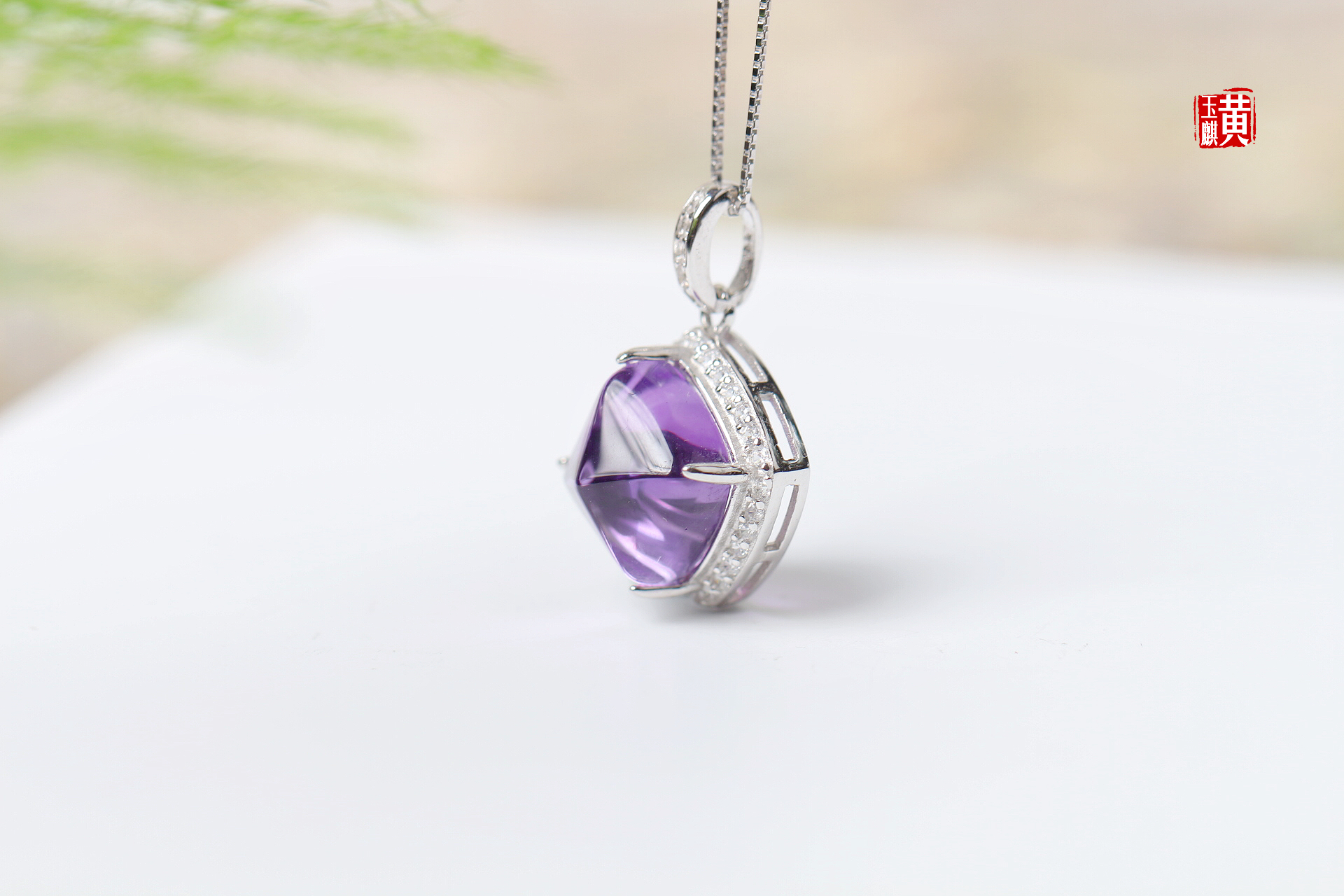 紫水晶糖塔吊坠,纯净体,紫色高贵神秘,浪漫温柔,紫气东来,925银镶,精致好看,当锁骨链时尚靓丽。