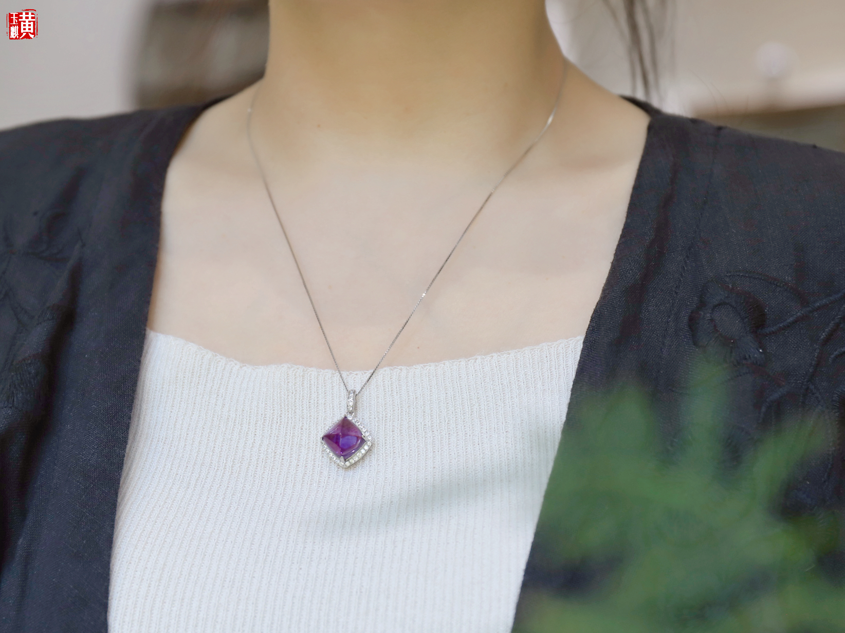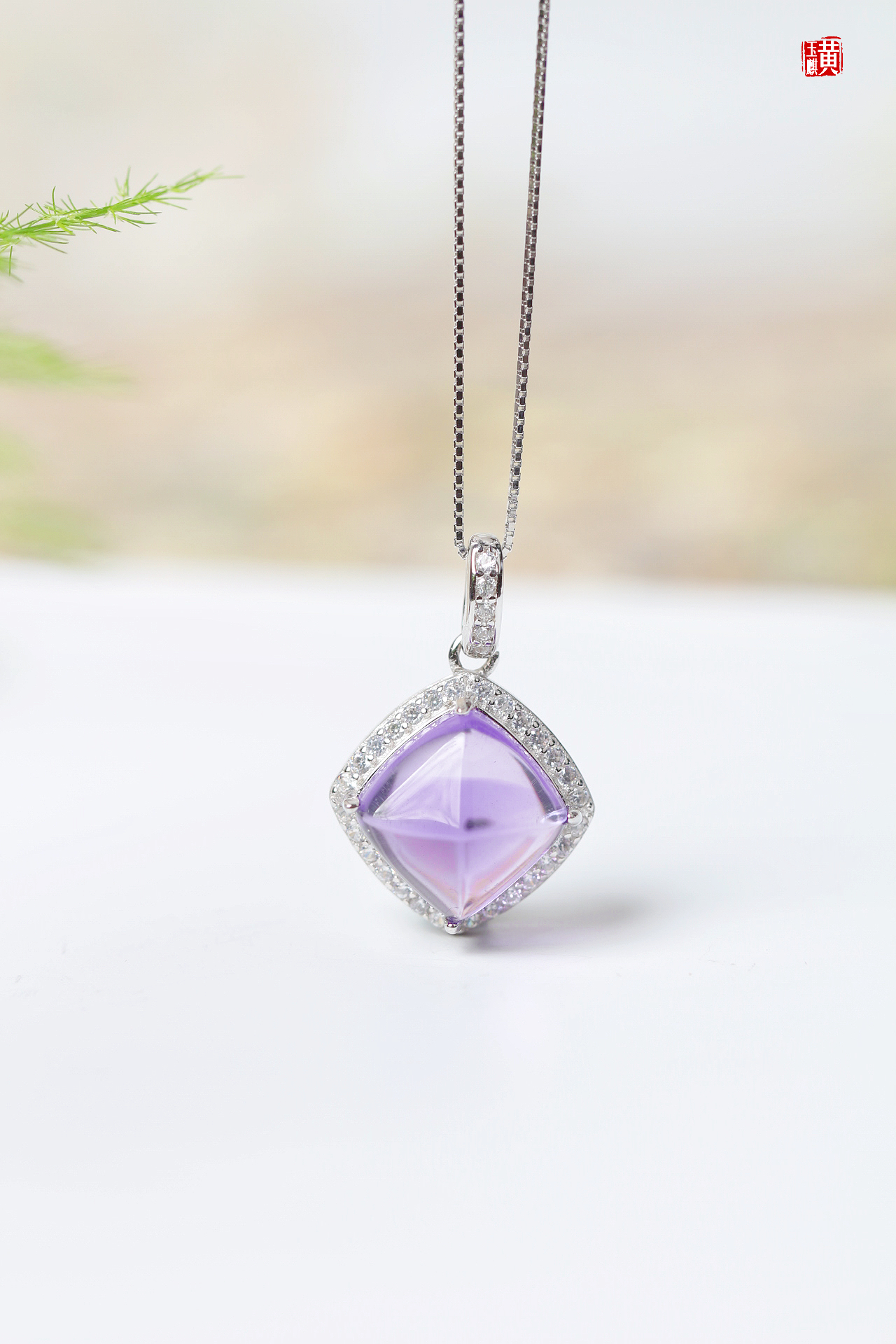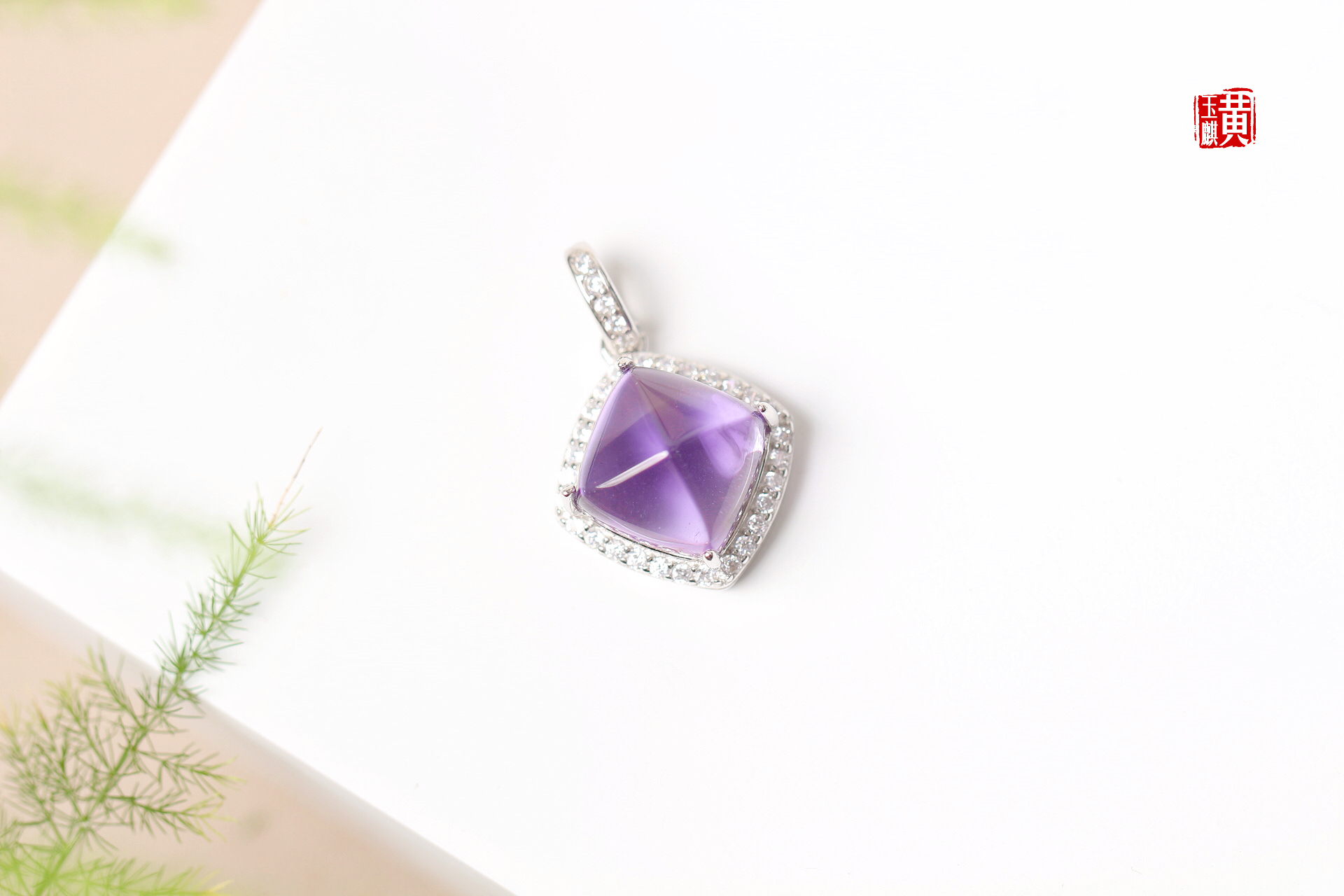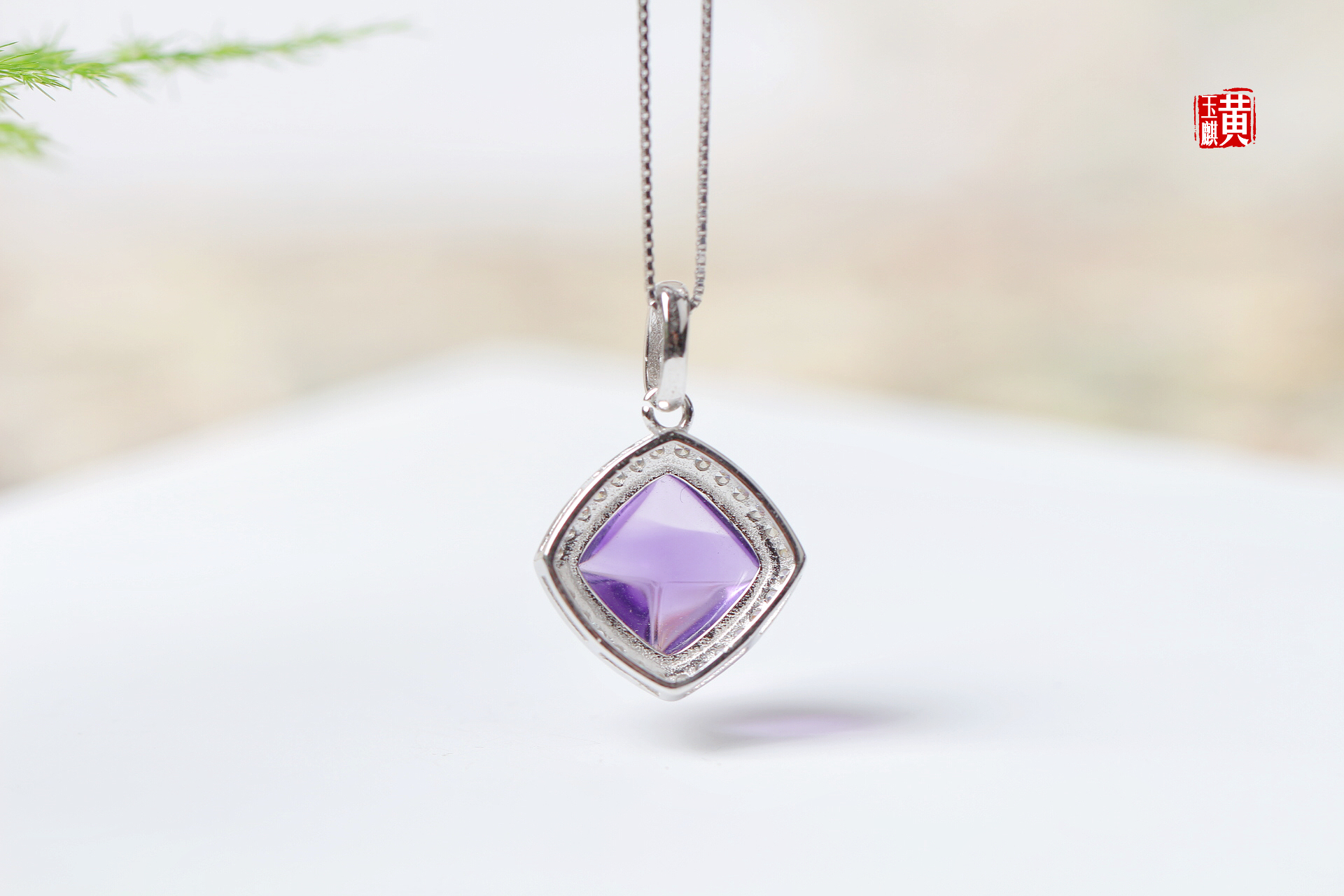 紫水晶糖塔吊坠,纯净体,紫色高贵神秘,浪漫温柔,紫气东来,925银镶,精致好看,当锁骨链时尚靓丽。