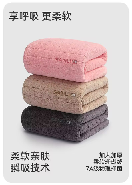 浴巾10A抗菌柔软吸水珊瑚绒速干男女家用洗澡浴巾毛巾浴巾套装