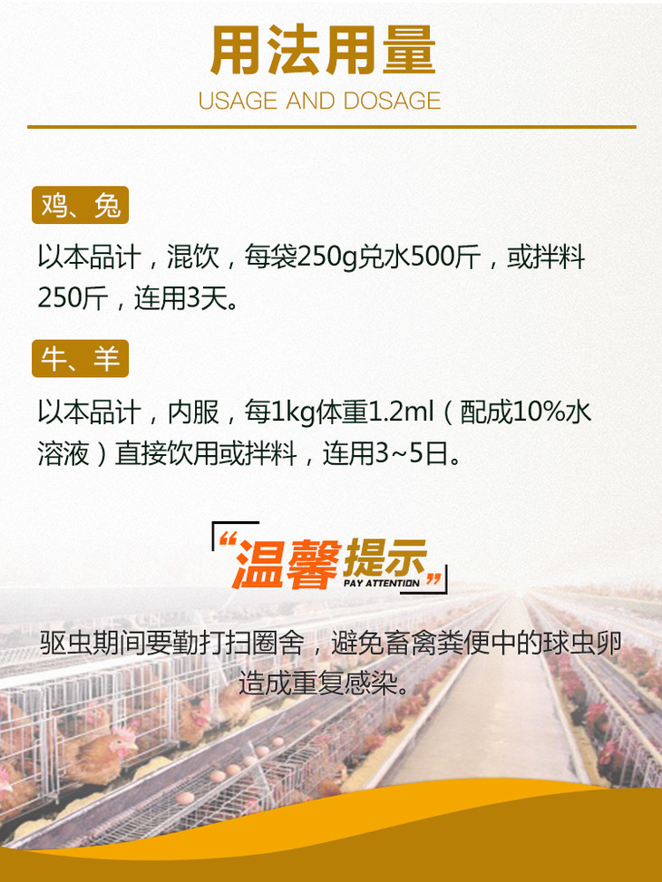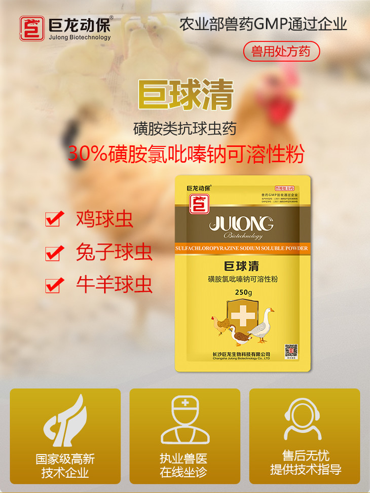 【巨球清】禽用30%磺胺氯吡嗪钠可溶性粉禽药抗球虫药治疗羊.鸡.兔等球虫病250g/袋