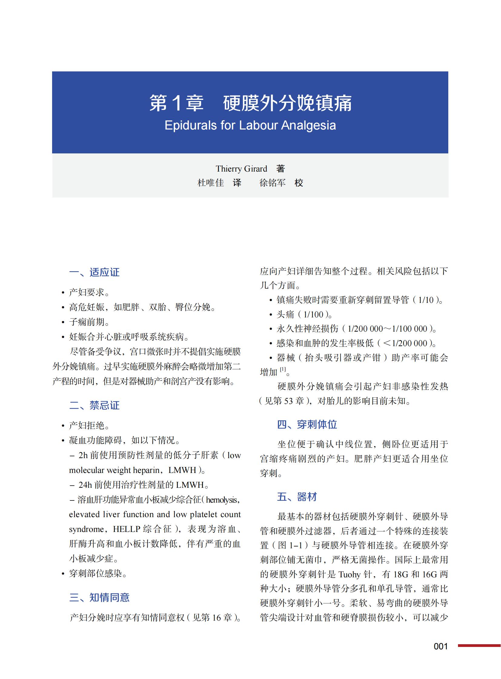 本书引进自 Springer 出版社,由众多国际知名产科麻醉学者联合编写,是一部全面介绍产科麻醉相关知识的实用著作。书中所述涵盖了产科麻醉的大多数内容,对腰硬联合麻醉、硬膜外麻醉和蛛网膜下腔麻醉行剖宫产和分娩镇痛进行了详细介绍,对前置胎盘、产科大出血、围生期心肌病等危重症产妇的围术期管理进行了细致分析,还对椎管内麻醉相关并发症的预防及治疗提出了建议,对相关研究进展进行了更新,并以多学科诊疗为基础,针对产科常见病症和急危重症的相关知识点进行了梳理和解析。本书内容丰富、条理清晰、层次分明、图文并茂,紧紧围绕产科麻醉的临床常用技术,对各级麻醉科医师都有很重要的临床参考,可为从事产科麻醉及相关学科的医生和医学生提供实用参考。