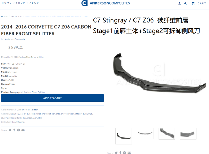 碳纤维前唇及可拆卸小风刀,克尔维特C7 Stingray/C7 Z06可用: