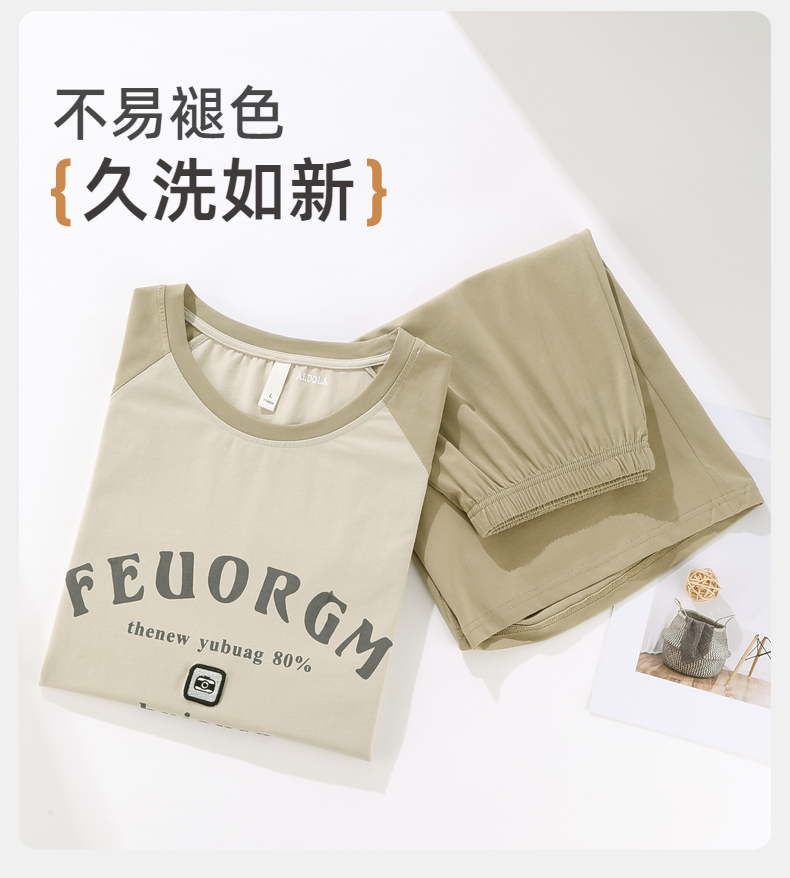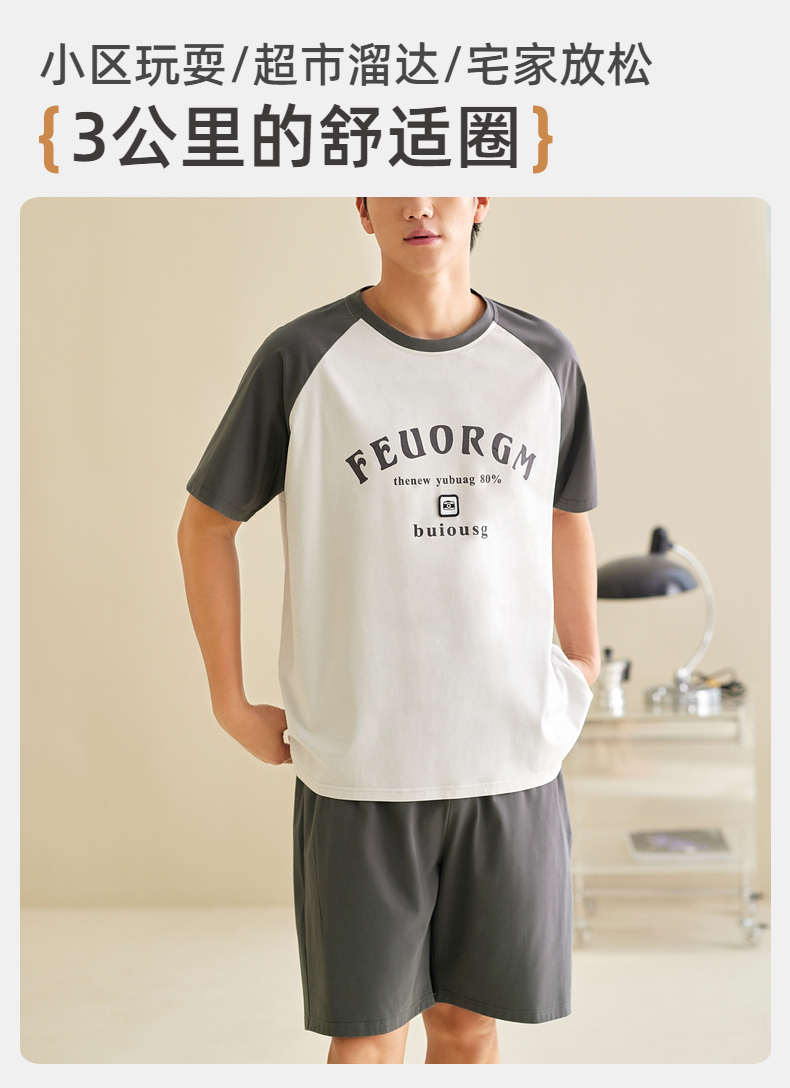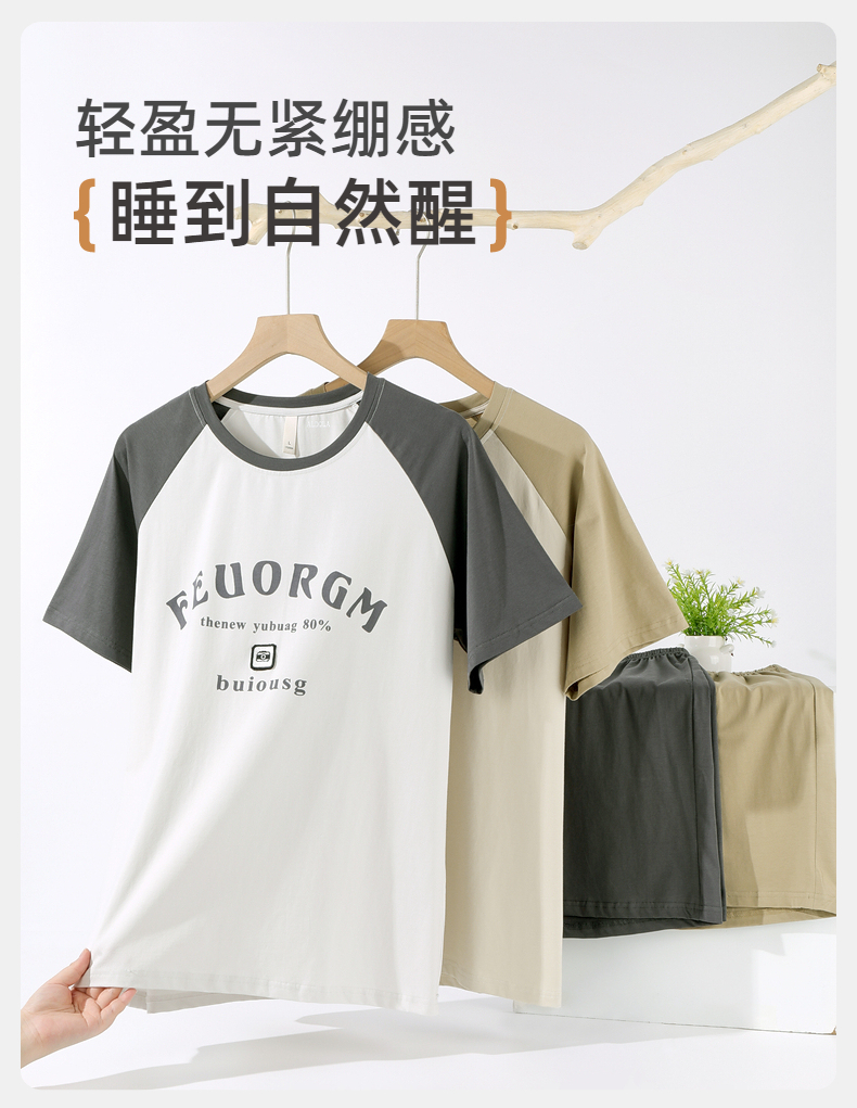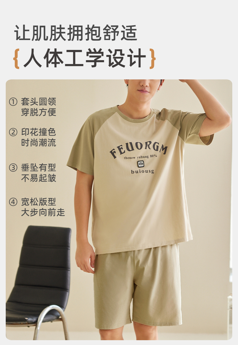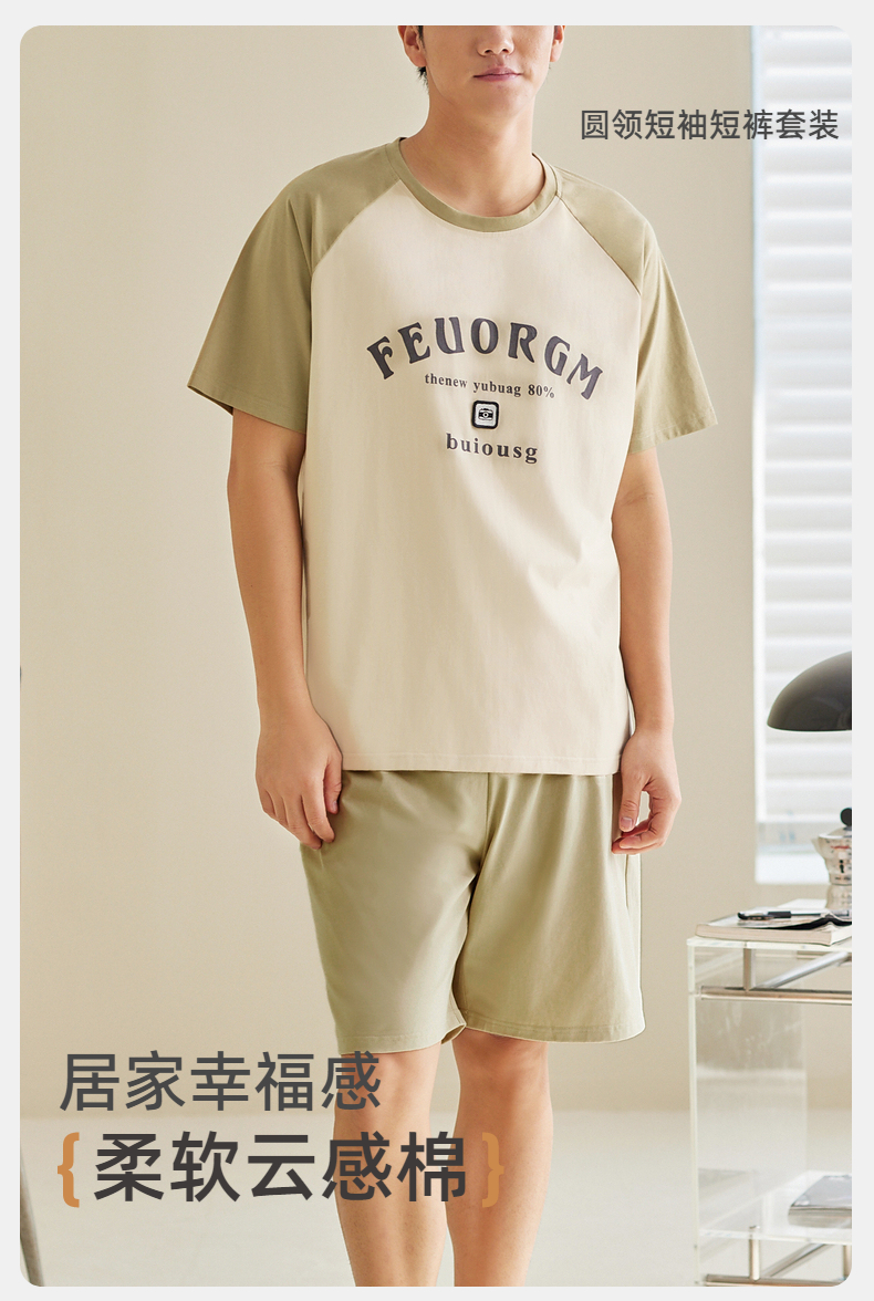 雅黛俪男士纯棉家居服圆领短袖短裤套装夏季薄款可外穿2025新款