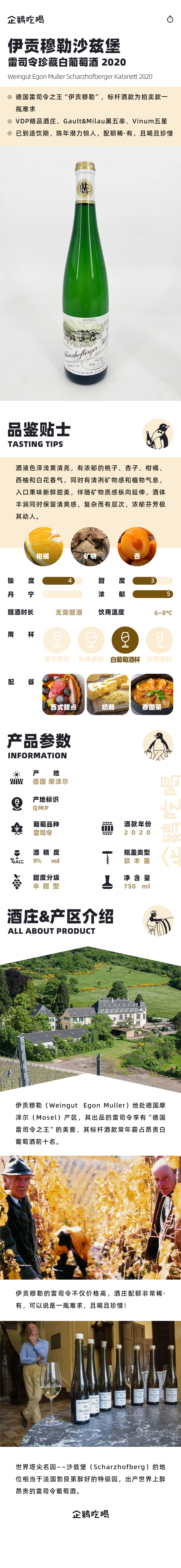 企鹅市集|德国伊贡穆勒酒庄 沙兹堡雷司令珍藏半甜白葡萄酒 2020