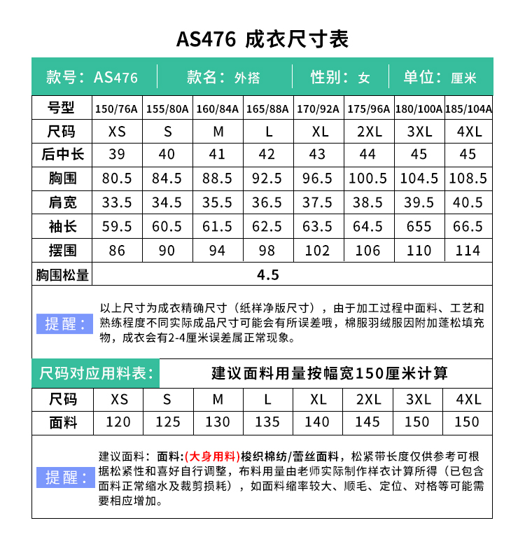 裁缝学苑AS476 防晒开衫纸样女装上衣百搭防晒衣外套样板图纸
