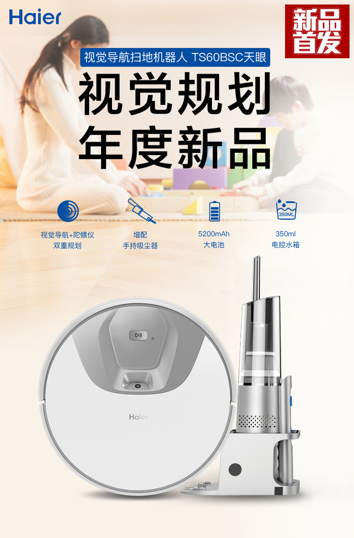 【家用电器】。海尔天眼智能扫地机器人家用全自动扫地拖地擦地一体机TS60BSC