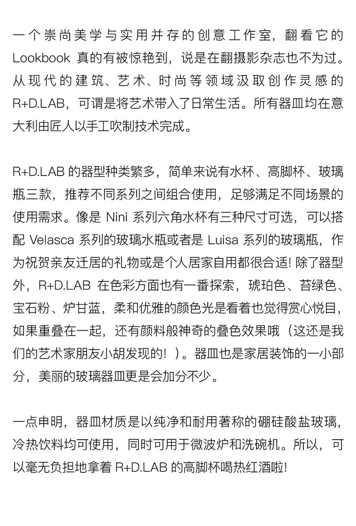 意大利 R+D.LAB Luisa系列 手握杯 高脚杯 玻璃水瓶 水杯秋冬新色