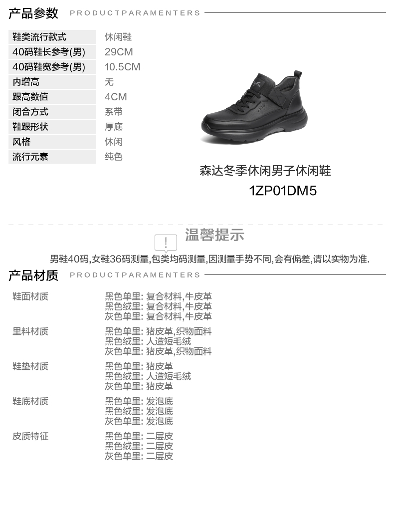 【云粉节】BF楼 森达商务健步鞋2025冬季新款厚底圆头运动休闲鞋1ZP01吊牌价1199活动价599