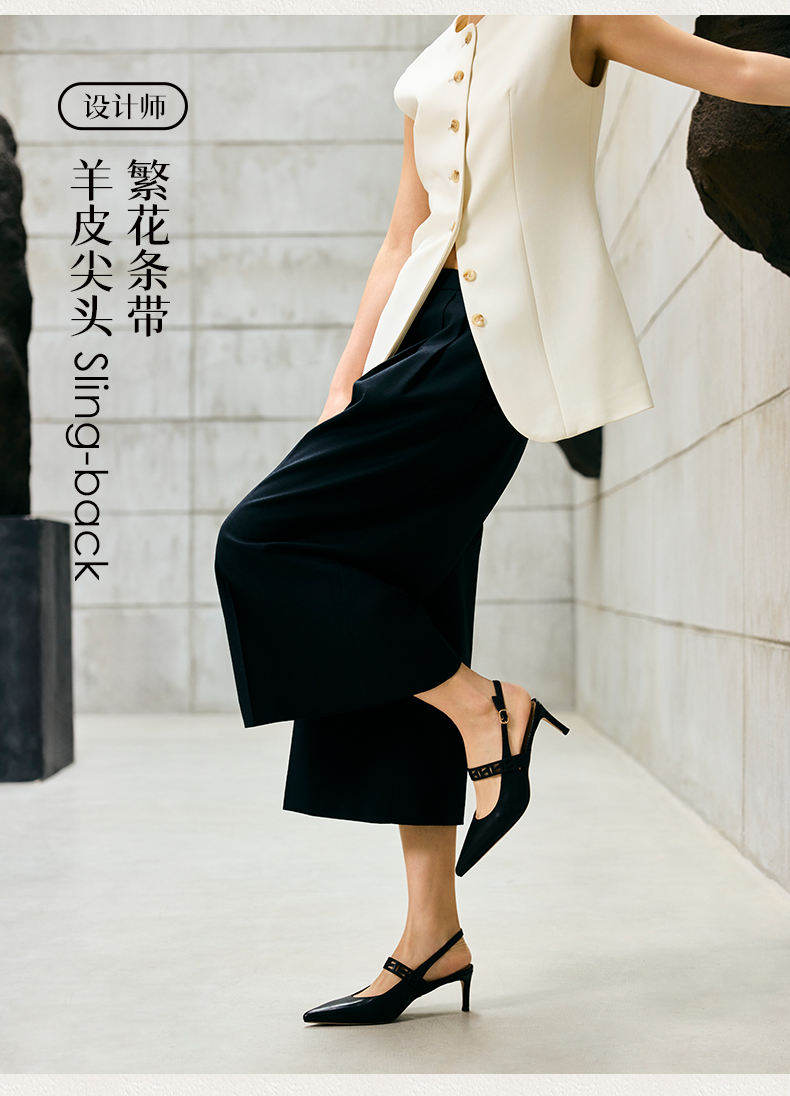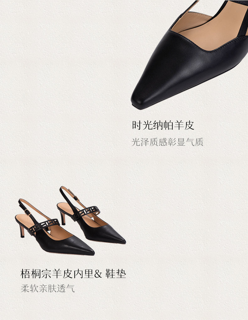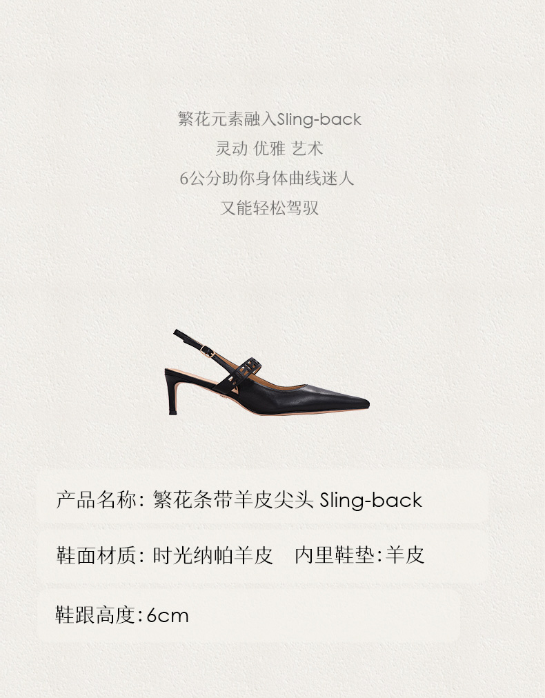 heelz设计师手工鞋履 |繁花条带羊皮尖头 Sling-back 6公分