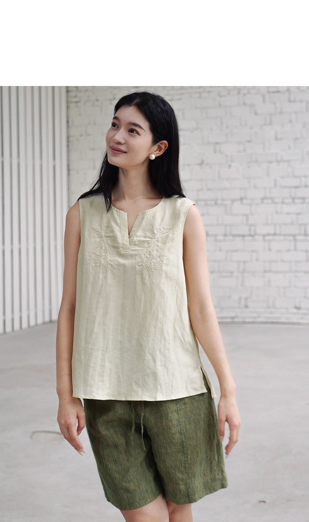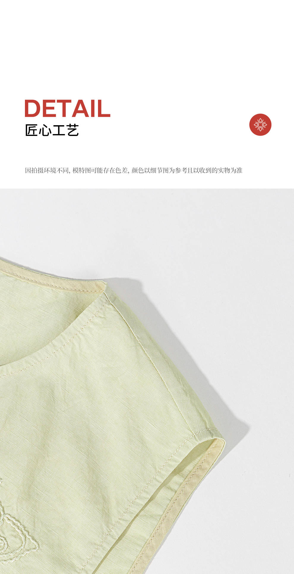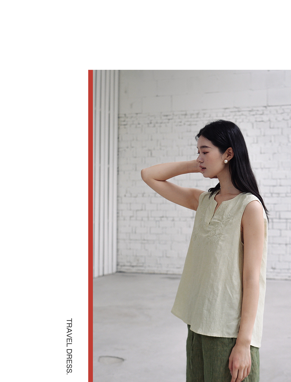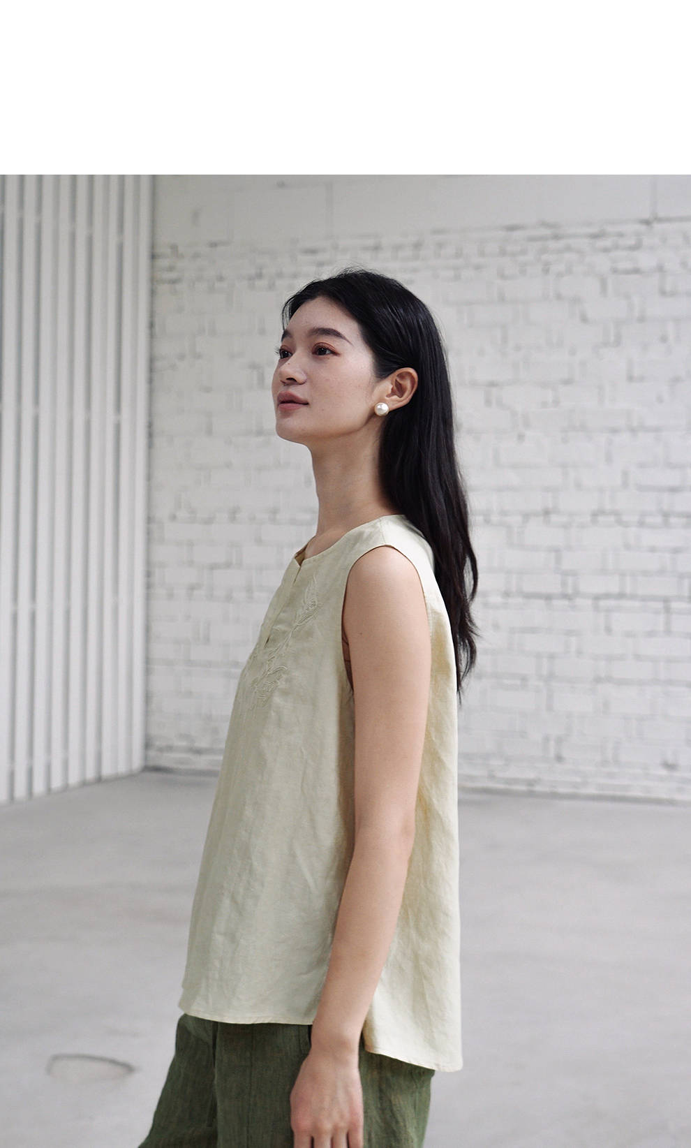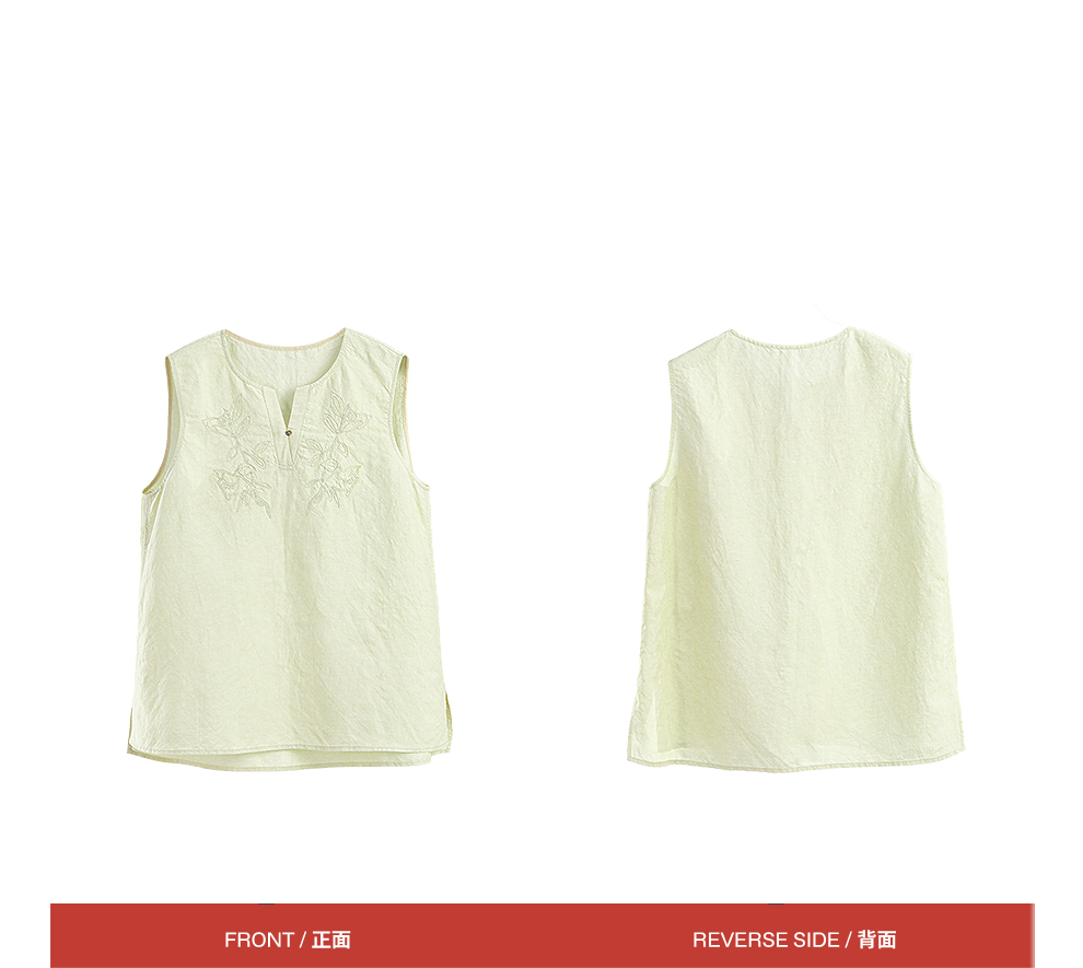 绽放315朵/【多巴胺系列·青柠】亚麻茶花盘带绣V领无袖背心吊带