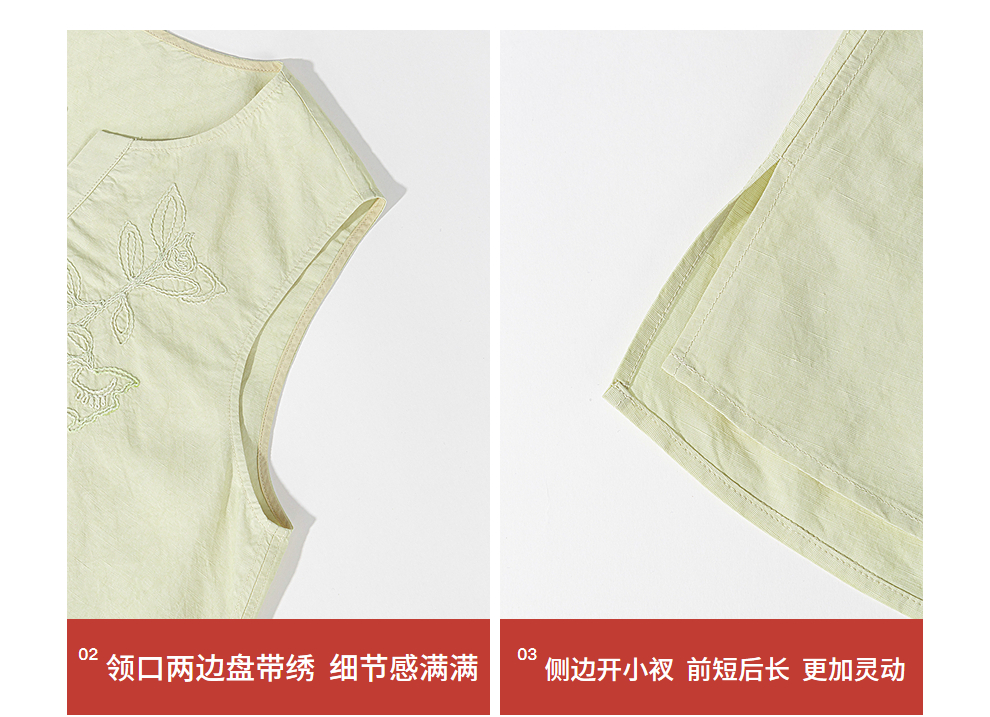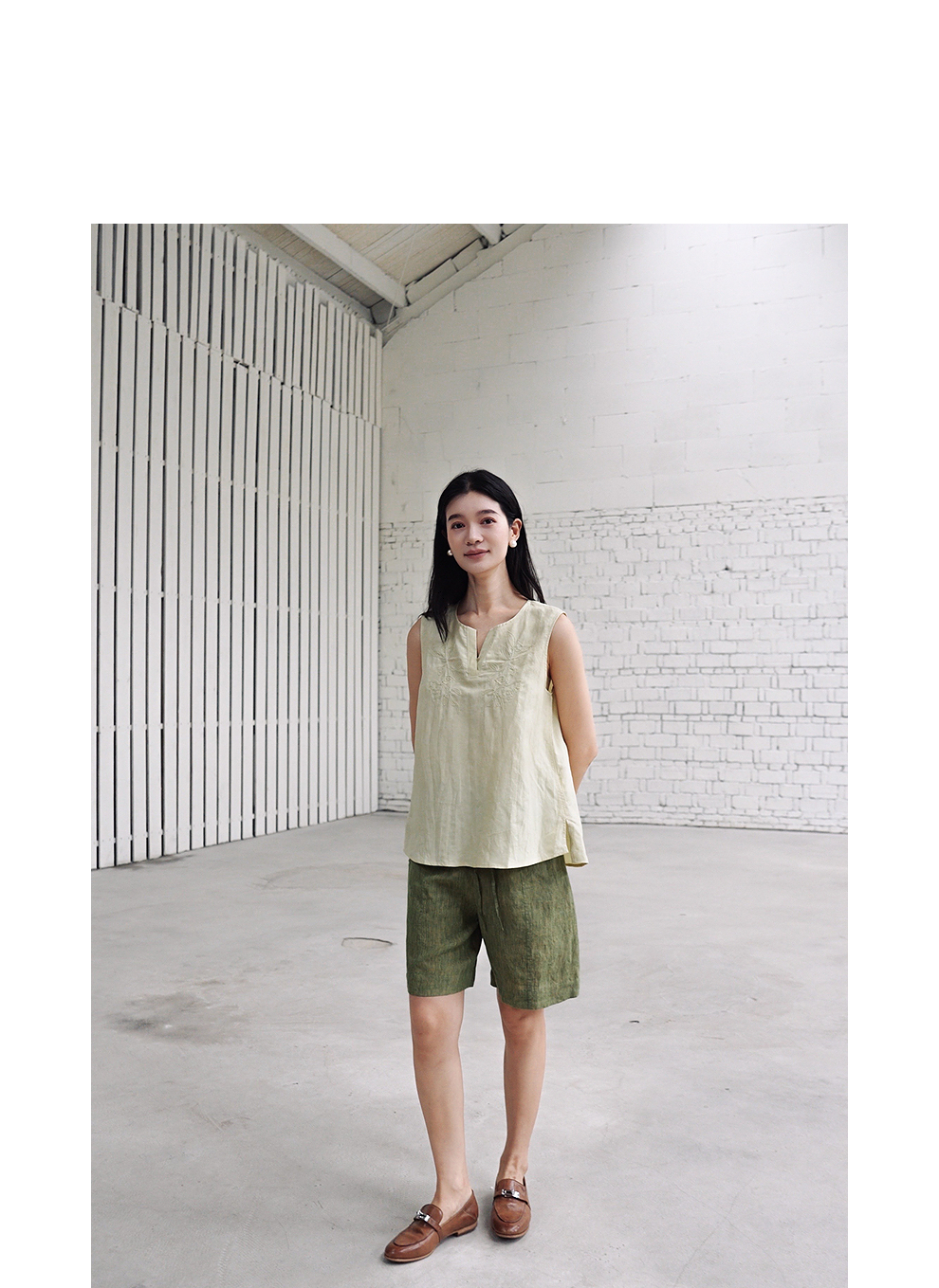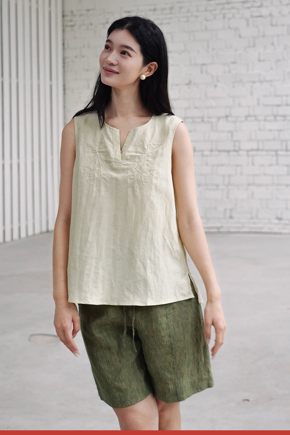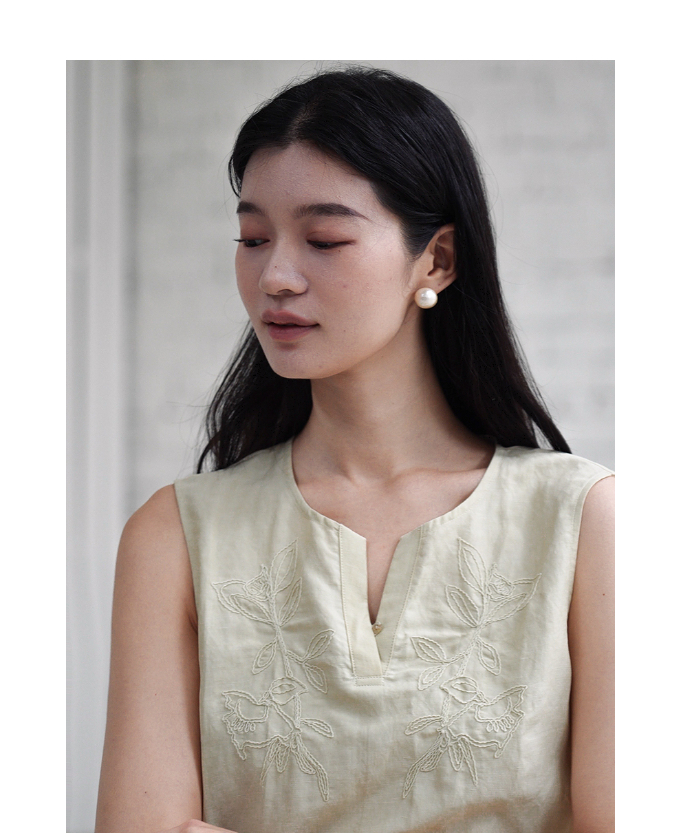 绽放315朵/【多巴胺系列·青柠】亚麻茶花盘带绣V领无袖背心吊带
