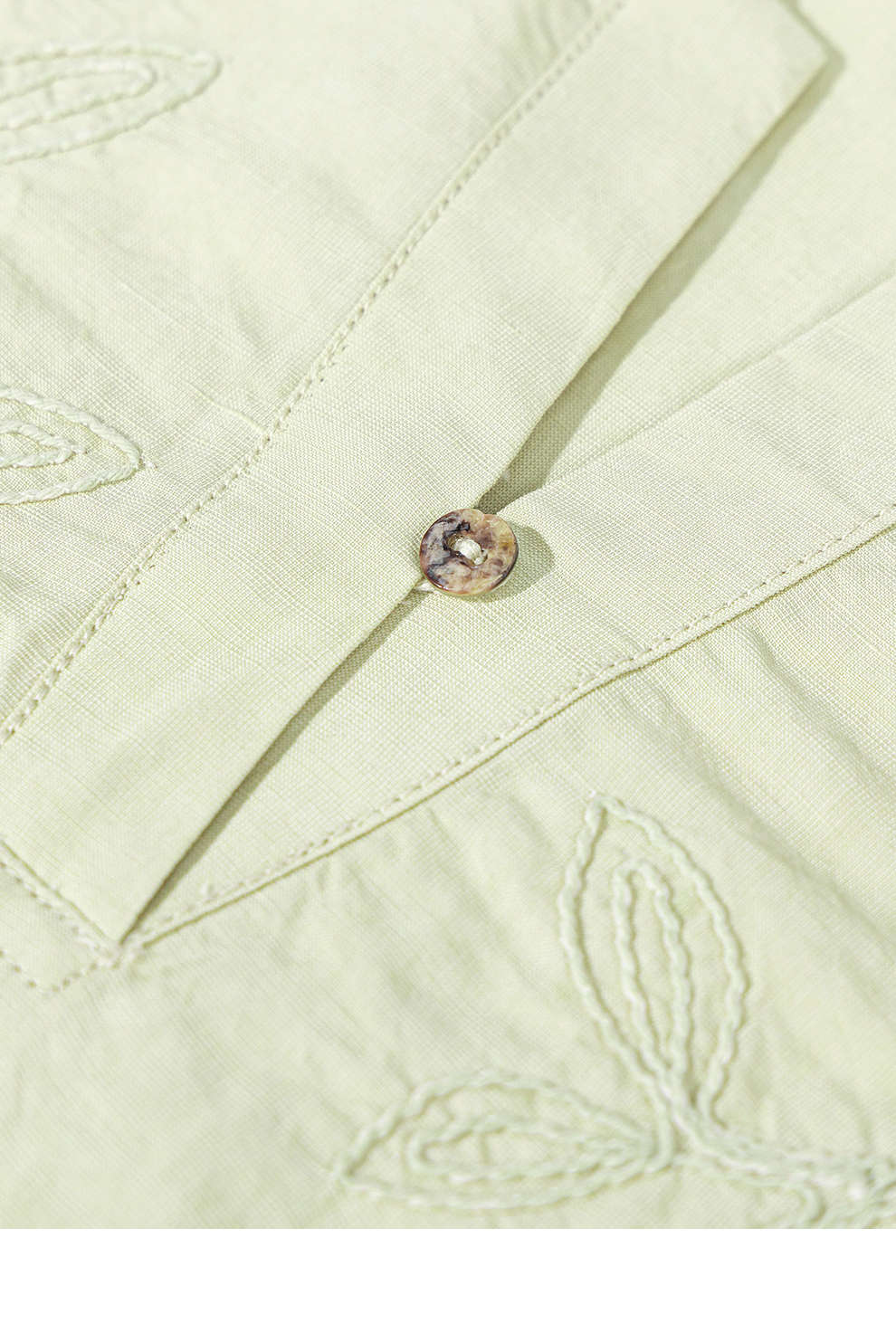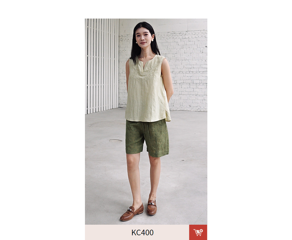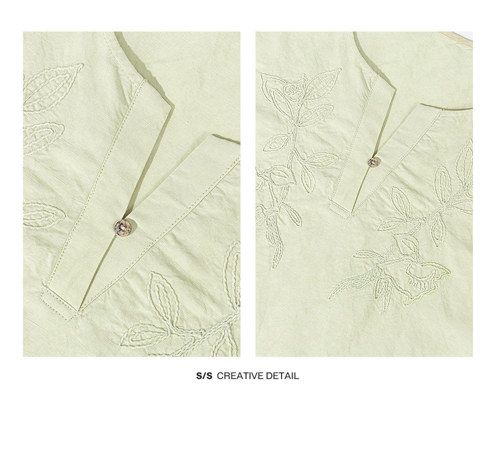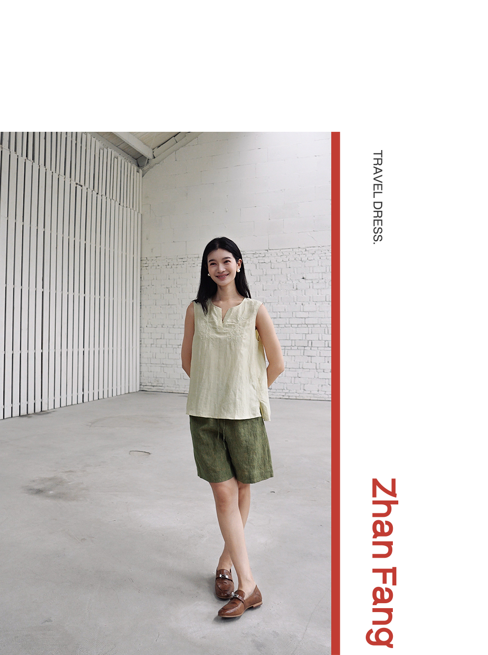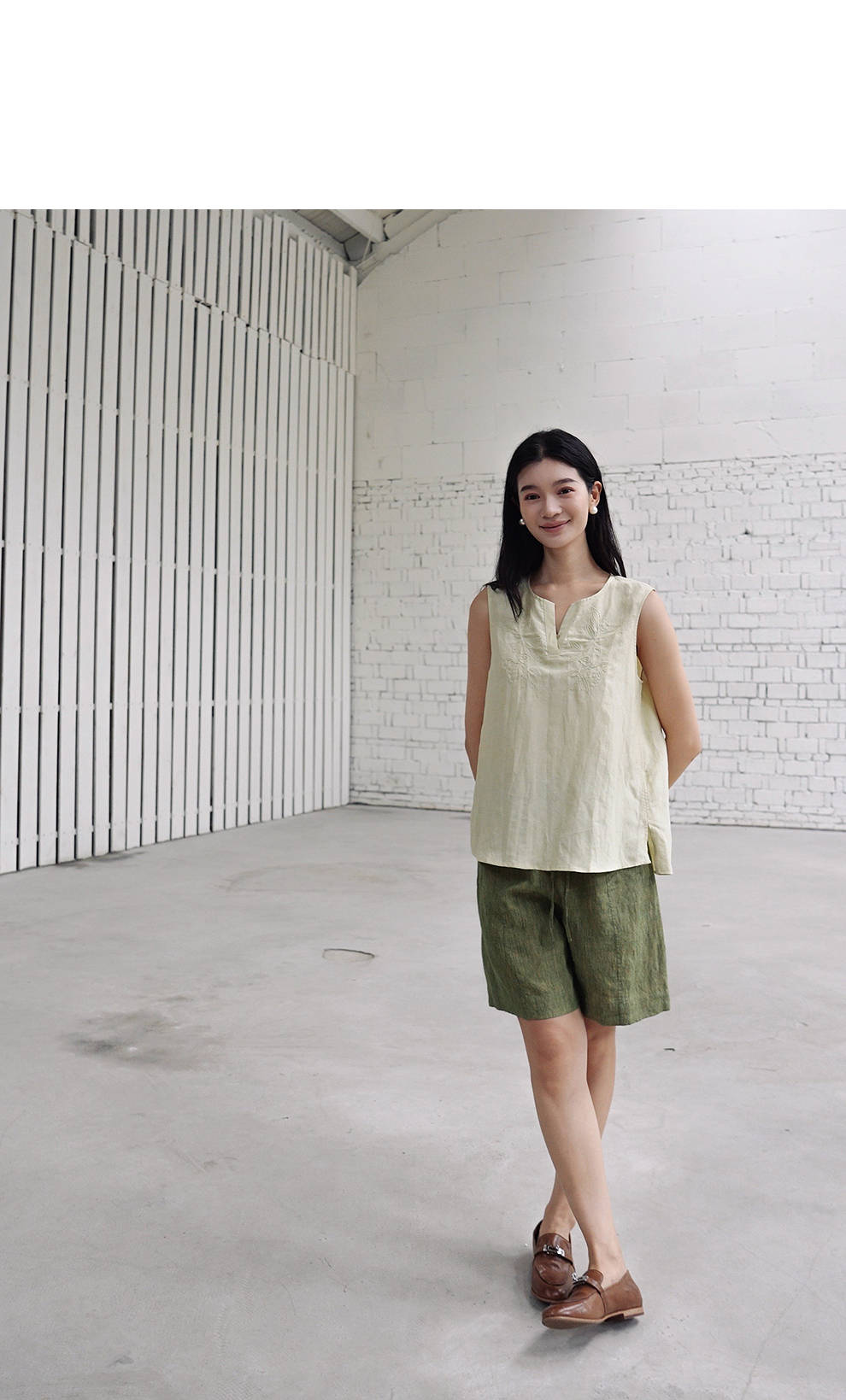 绽放315朵/【多巴胺系列·青柠】亚麻茶花盘带绣V领无袖背心吊带