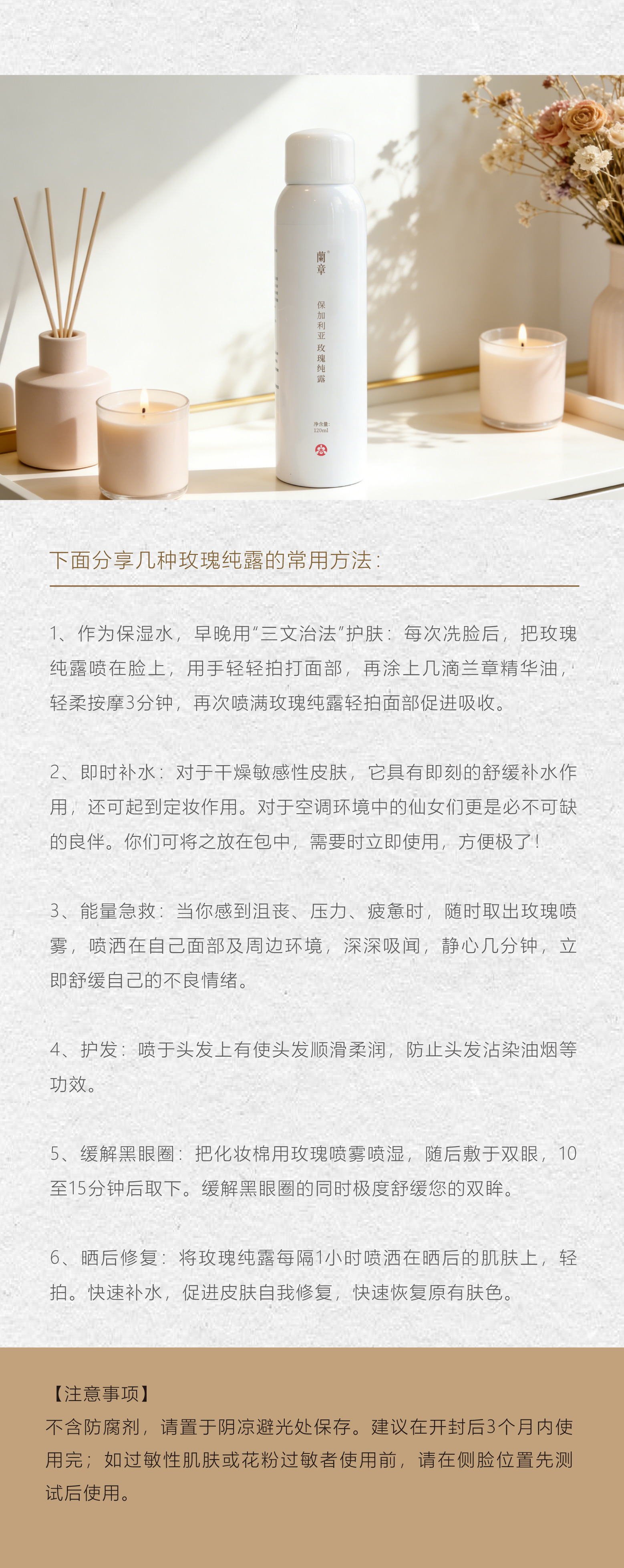 如过敏性肌肤或花粉过敏者使用前,请在侧脸位置先测试后使用。