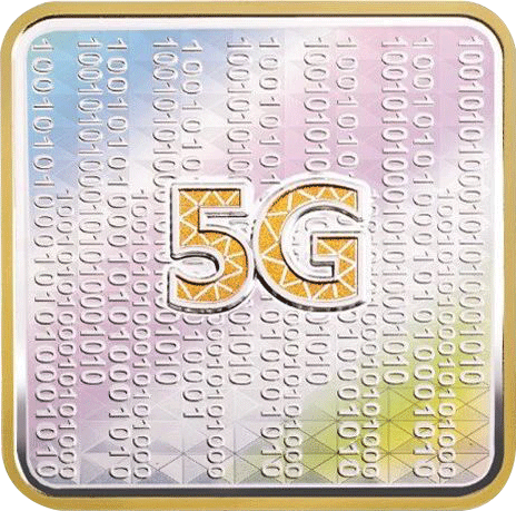 正中间的“5G”采用立体浮雕设计,和彩喷工艺,呈现金色的光芒。