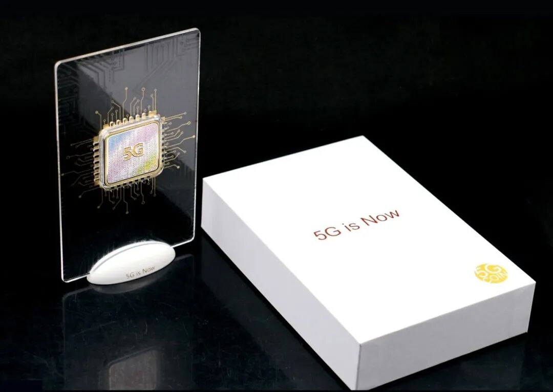 “5G”纪念币镶嵌在炫透卡中,可以360度立体展示把玩。