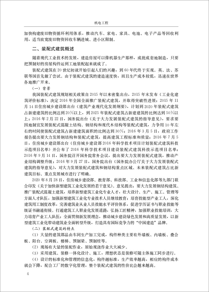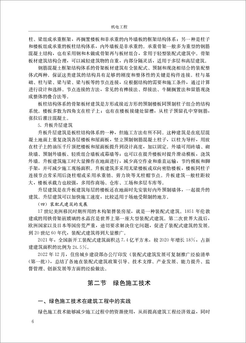 二级注册建造师继续教育培训教材《机电工程》内容丰富,基本涵盖了机电工程的主要知识,特别是新知识、新技术。包括绿色建筑与装配式建筑,机电工程施工技术,智能建筑及节能技术,新能源技术及施工,机电设备运输与吊装技术,建筑消防工程施工技术等。