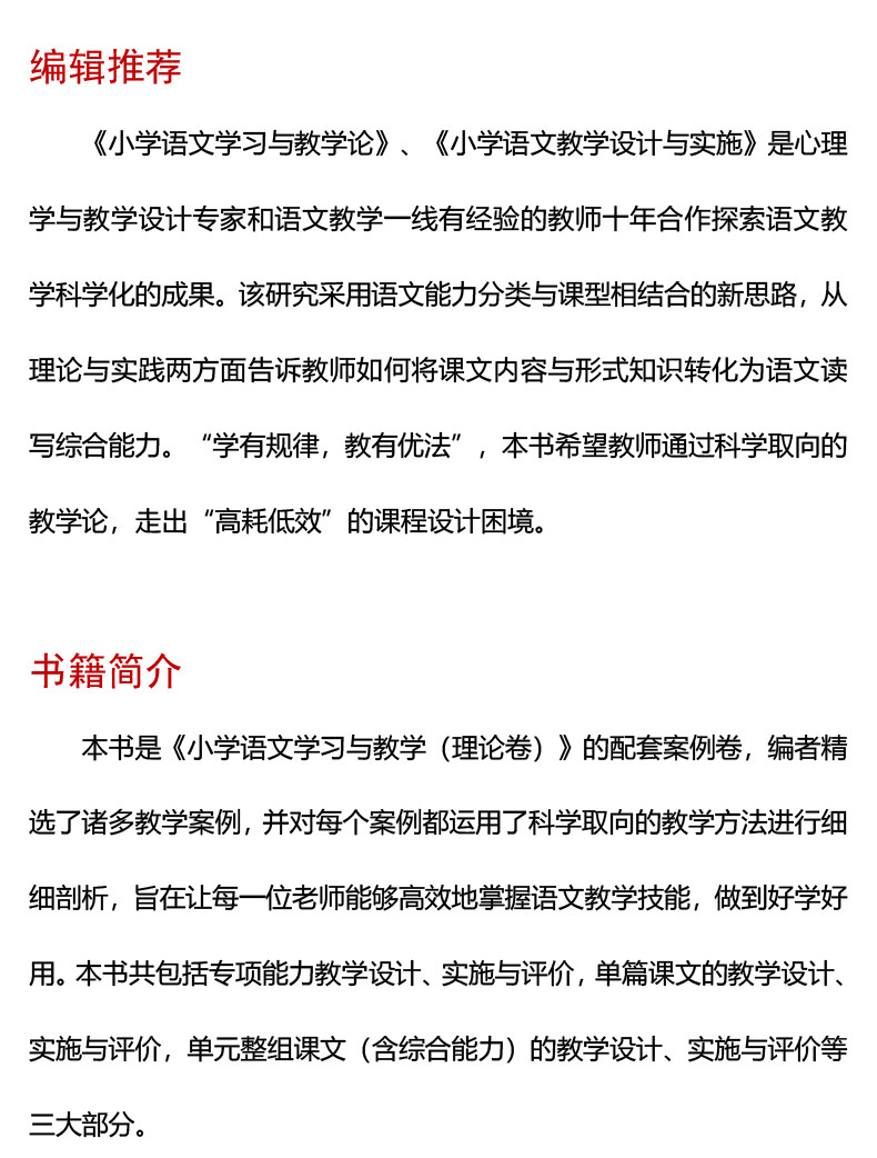 基于学习科学的学科教学丛书2本 小学语文教学设计与实施+小学语文学习与教学论 教学案例