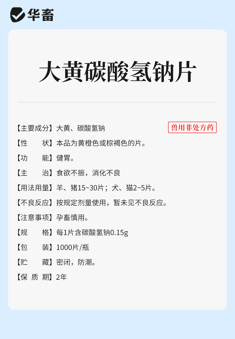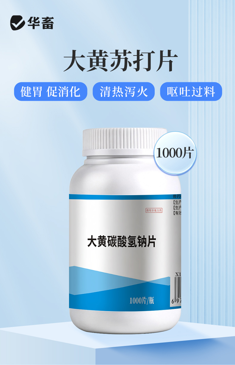 华畜大黄碳酸氢钠片1000片 健胃促消化 清热泻火 中和胃酸 增加食欲