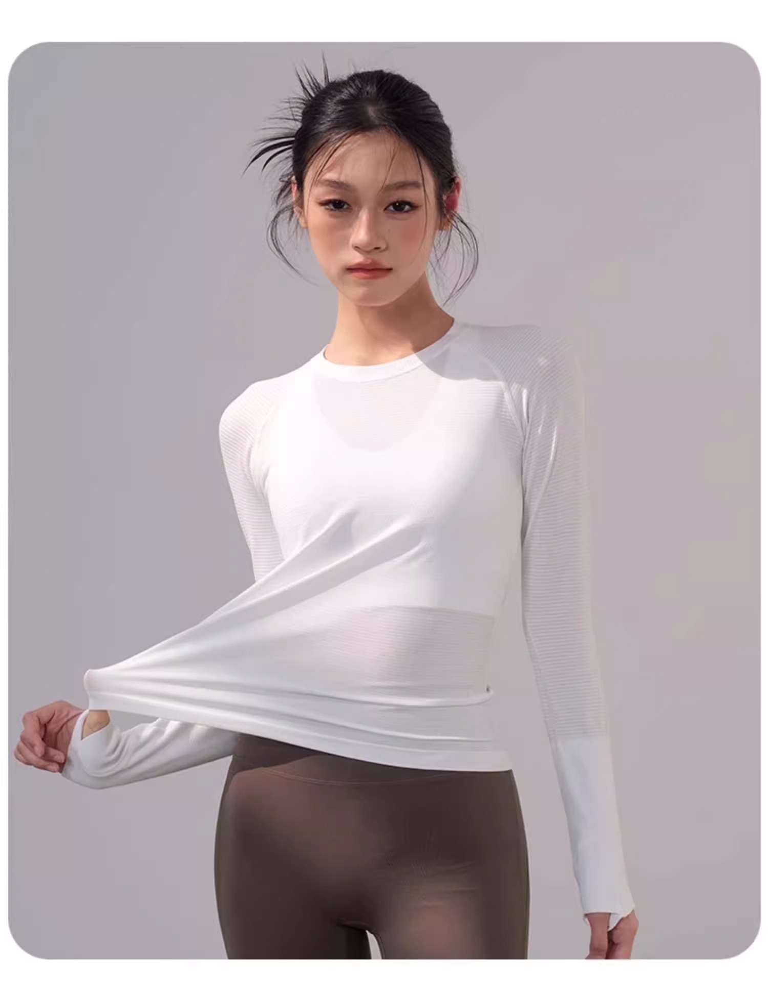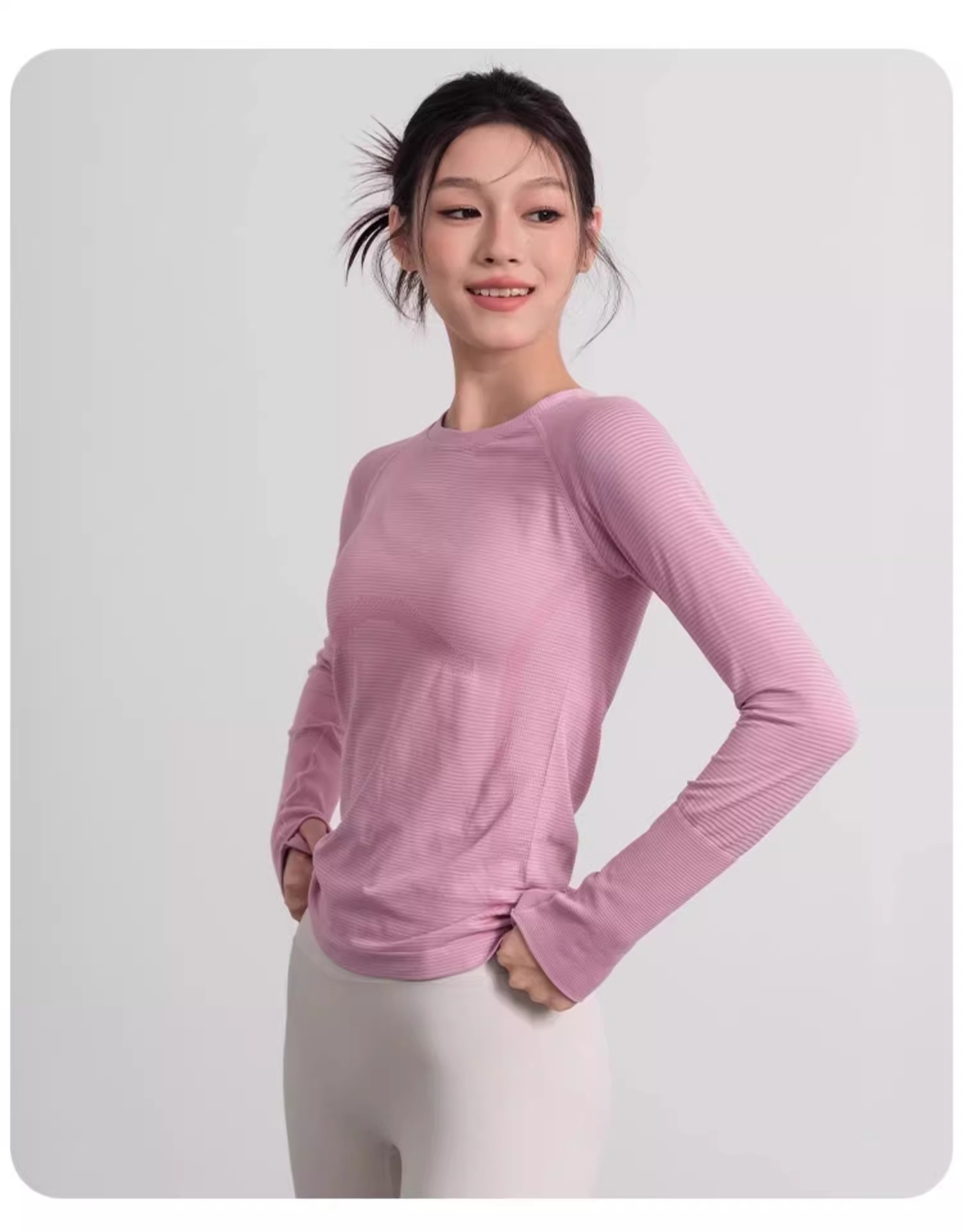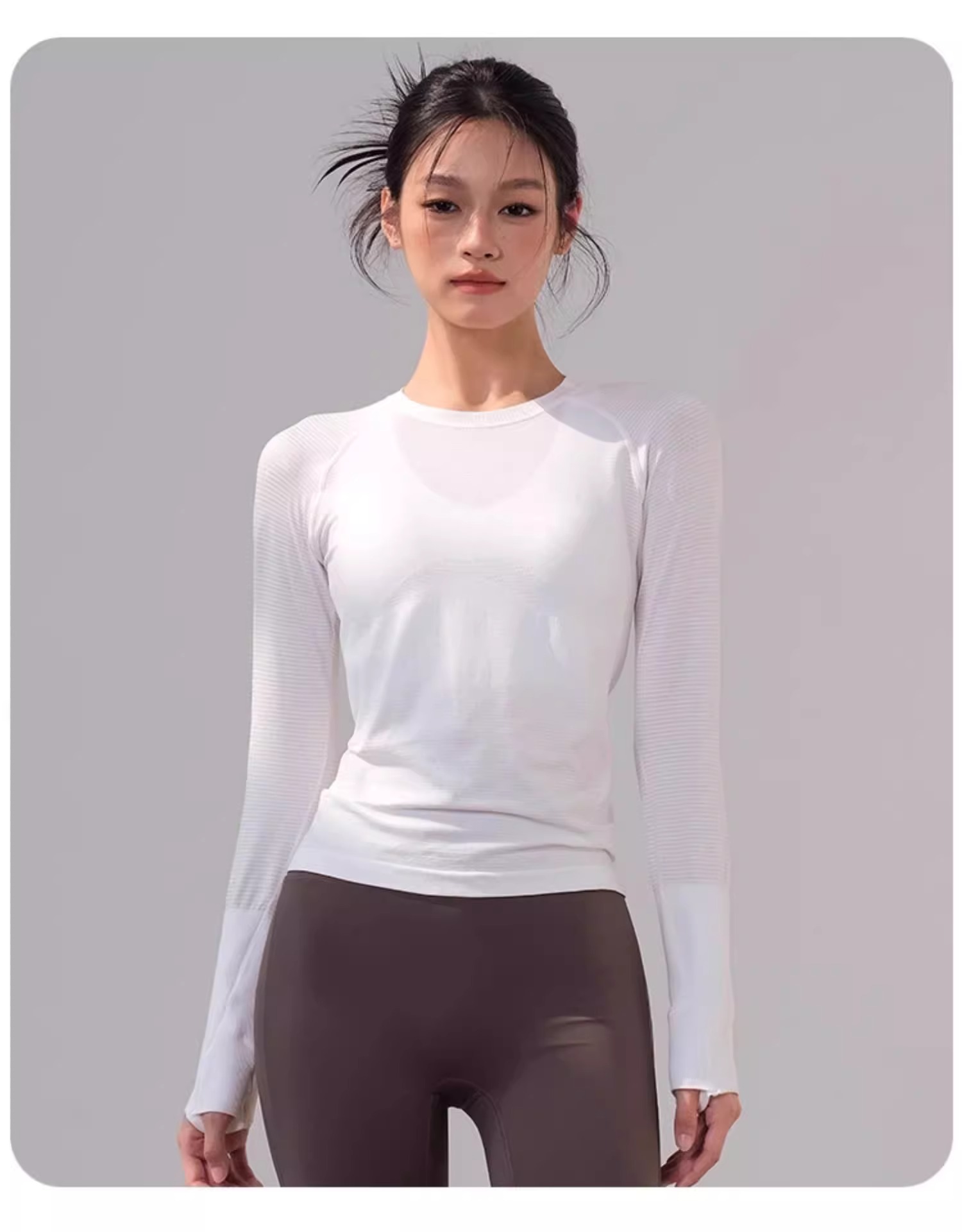 跃牌【美西西系列】春夏款修身圆领速干瑜伽服亮光跑步训练透气健身服长袖CX-2506