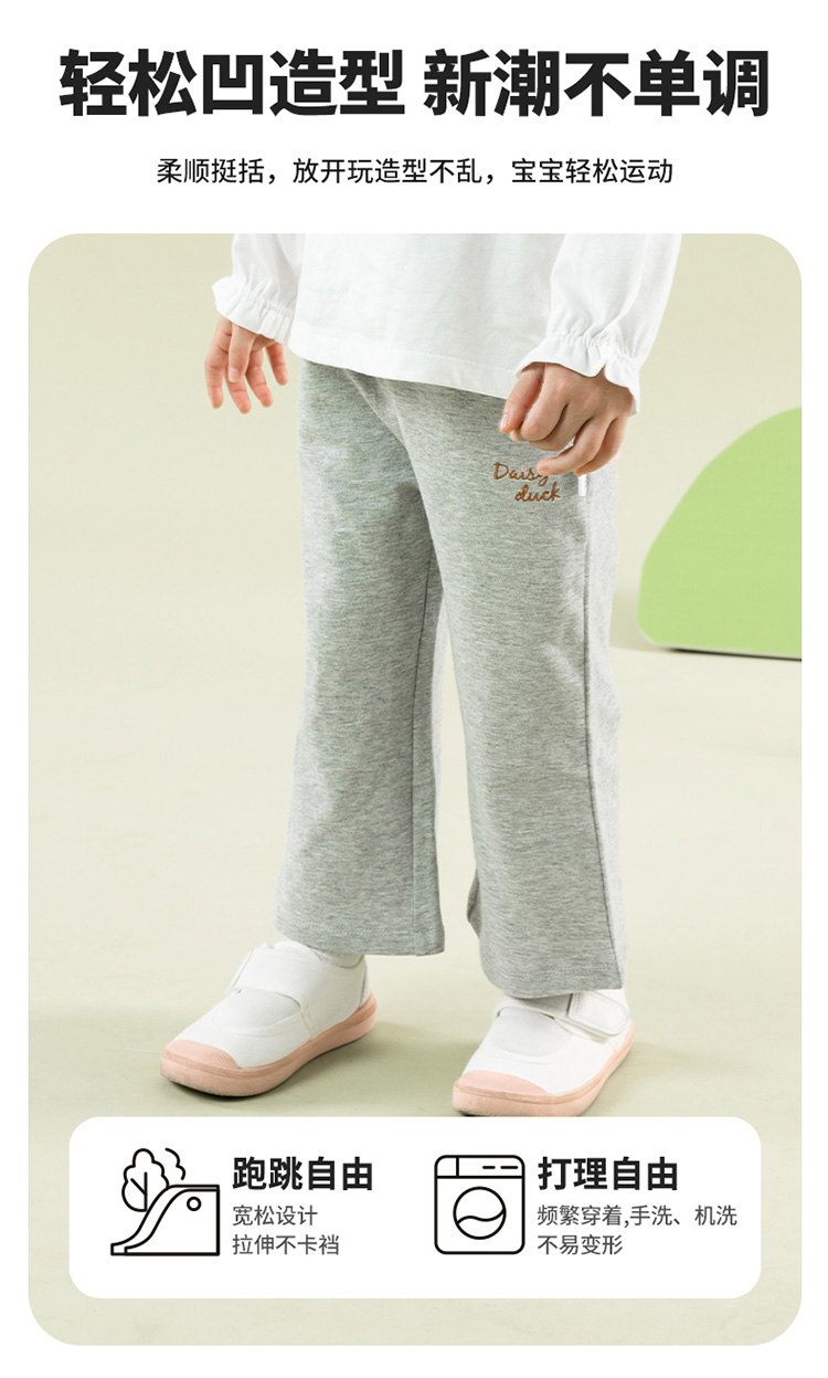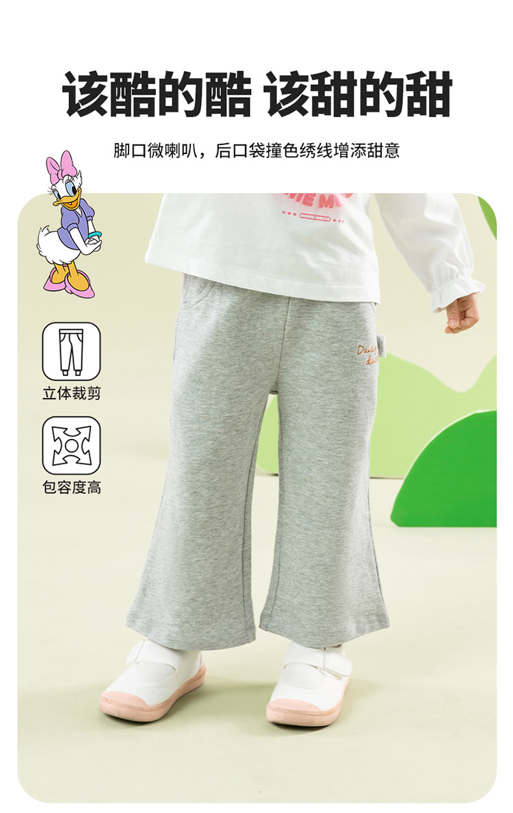 迪士尼2025春秋新款女童阔腿裤儿童百搭休闲长裤纯棉亲肤裤子学生裤ZD1EK004