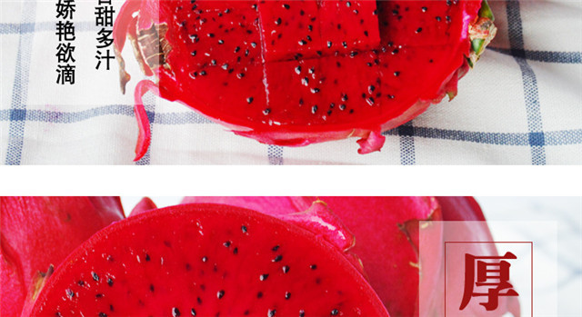 今天我们提供的是蜜宝红心火龙果,这个品种最大的缺点就是几乎没有叶片,非常容易枯萎,水气加重容易霉变,因为我们不是泡药水果,很多朋友就觉得果皮不新鲜,叶子稀了会觉得火龙果就坏掉了,对果皮的理解,请大家根据自己的接受度下单。这个品种的优点就是皮薄肉厚,个头不大,不会因为个大吃不完导致二次储存,果肉颜色更深,籽粒深黑,多而细密,花青素含量也非常高,蜜宝品种基本都是国产果,不用进口,花期也很长。