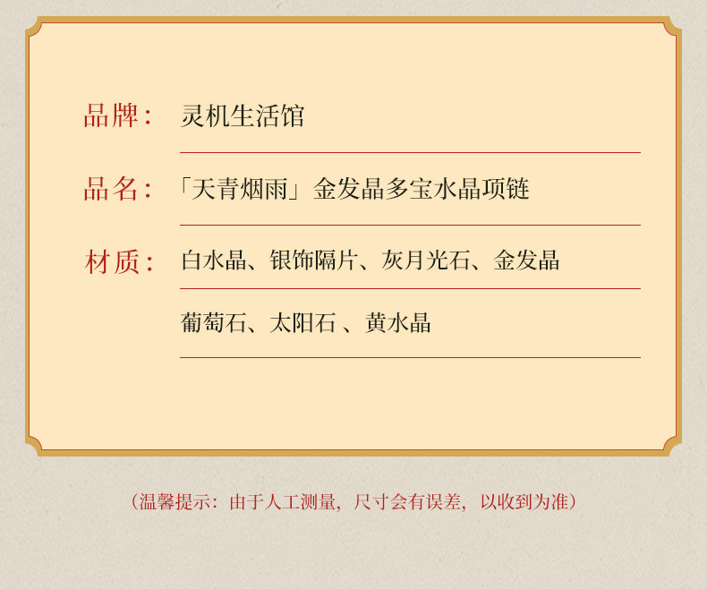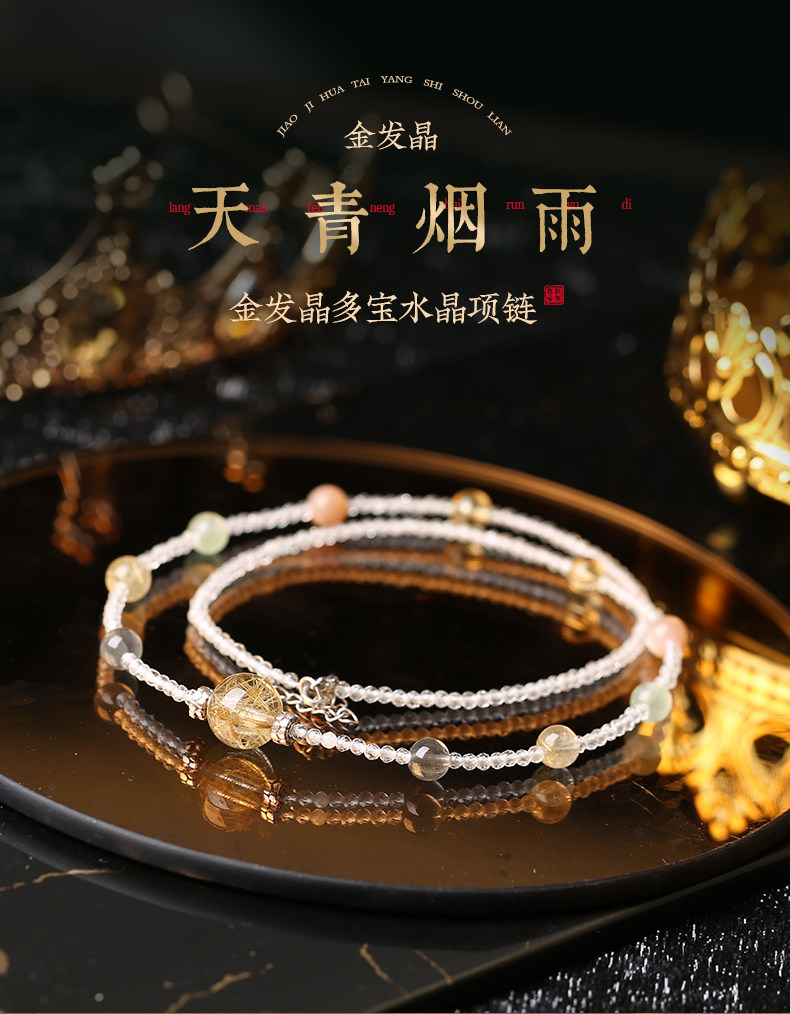 【祈愿吉品】「天青烟雨」金发晶多宝水晶项链