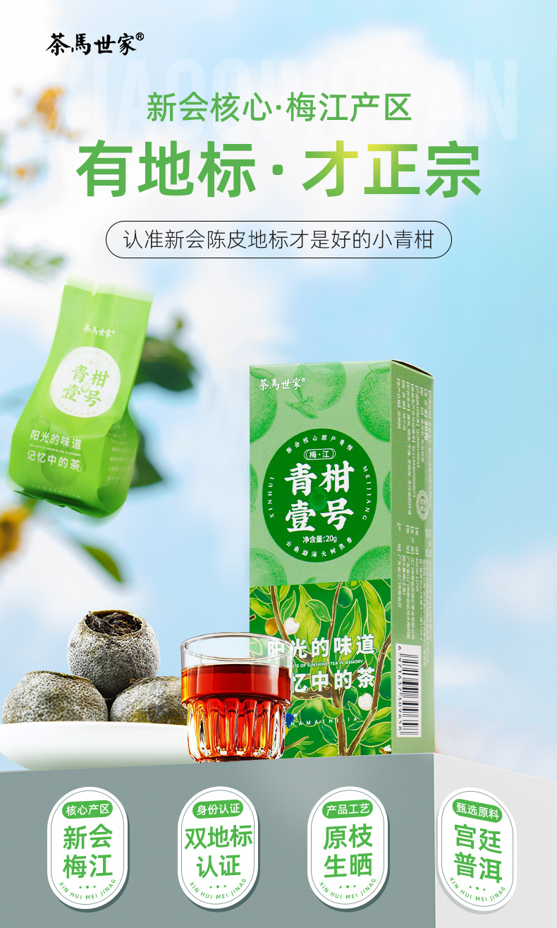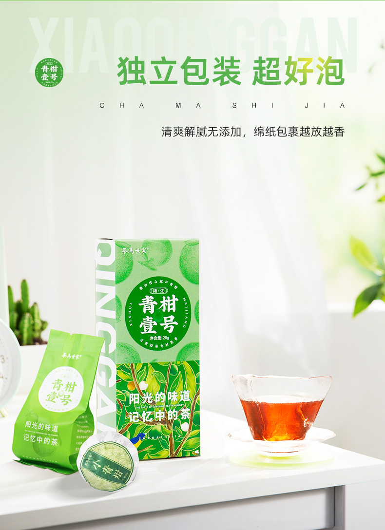【金奖】茶马世家正宗梅江生晒小青柑普洱熟茶品鉴装20g