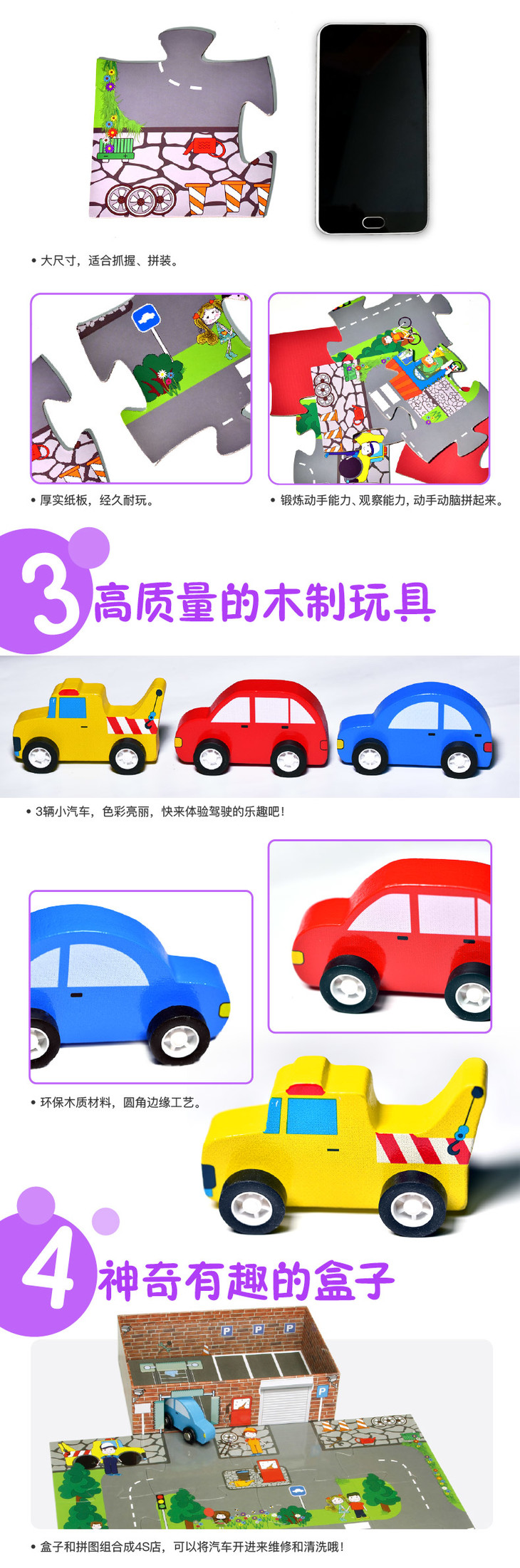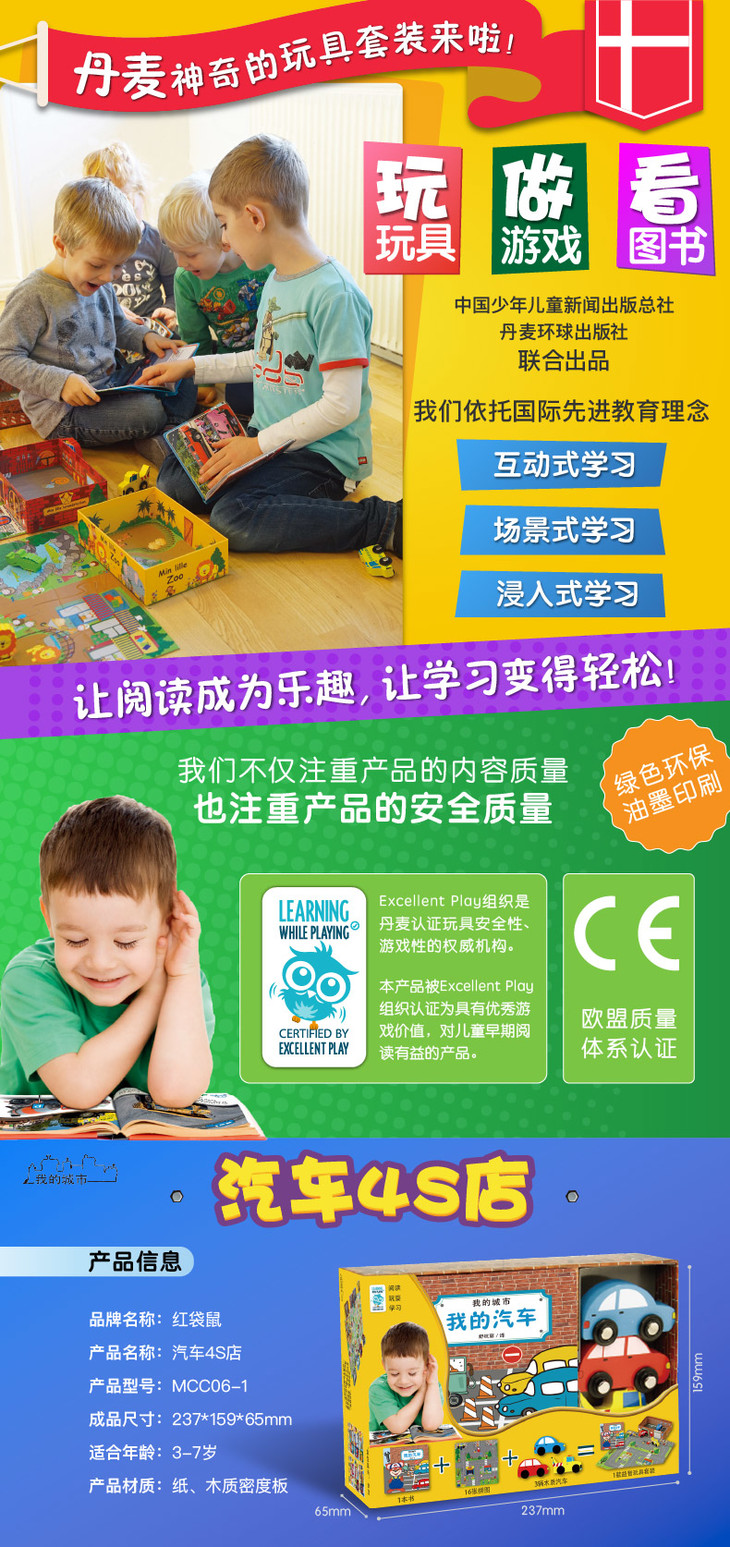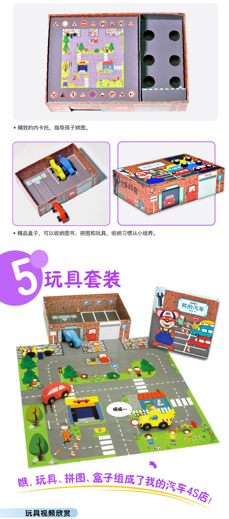 我的城市汽车4S店丨拼图、玩具、图书三合一 源自丹麦的畅销儿童启蒙套装 3-7岁适读