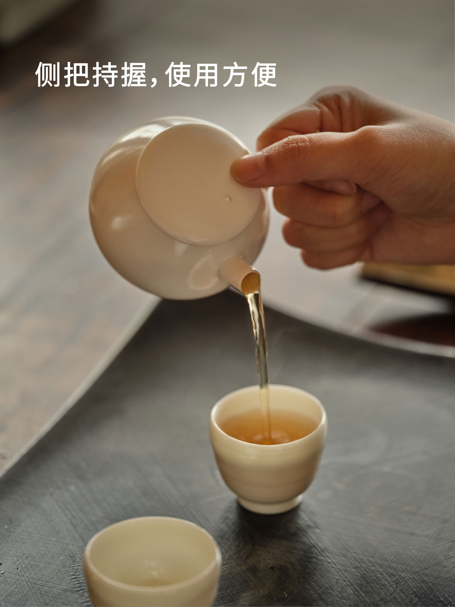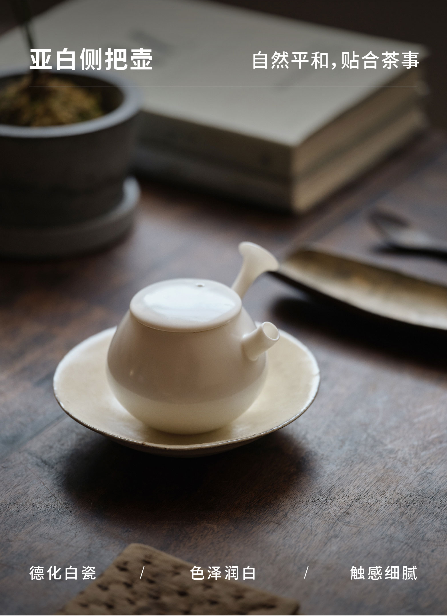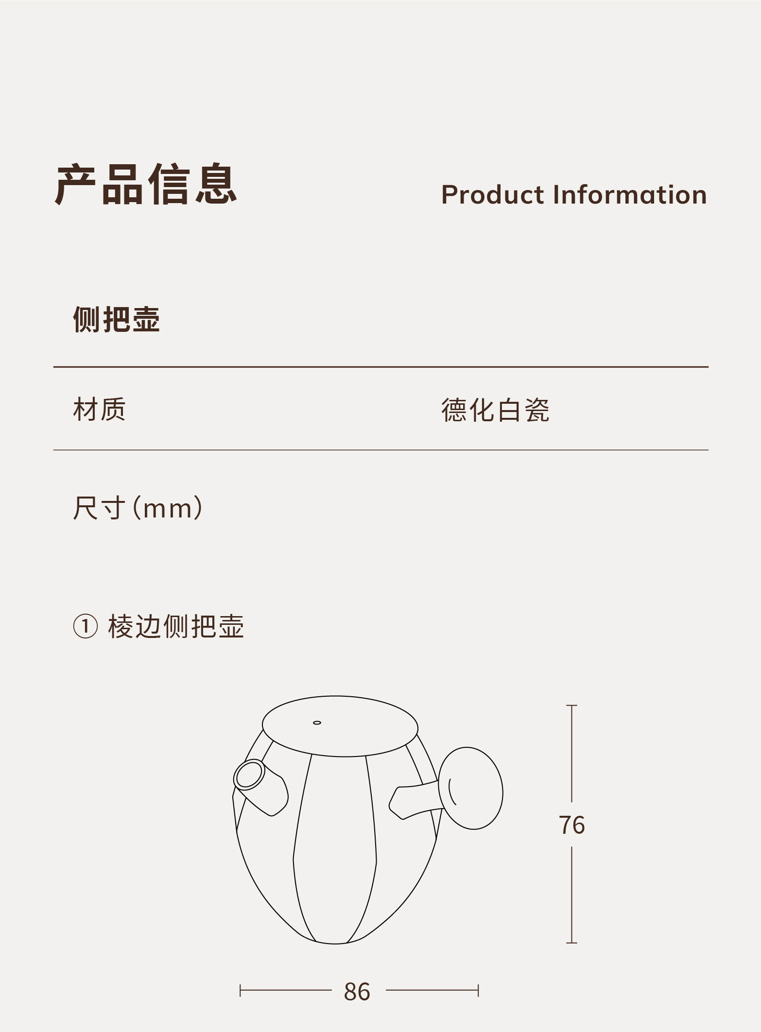 亚白侧把壶