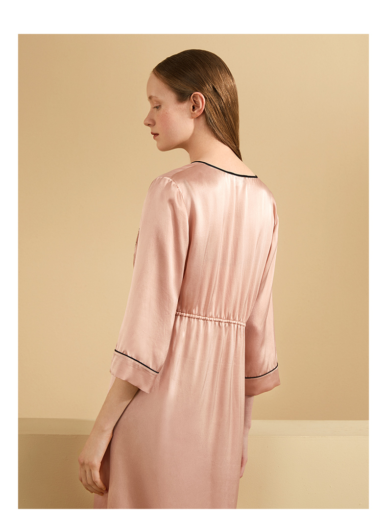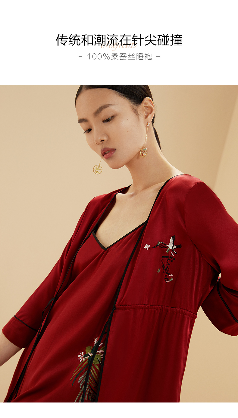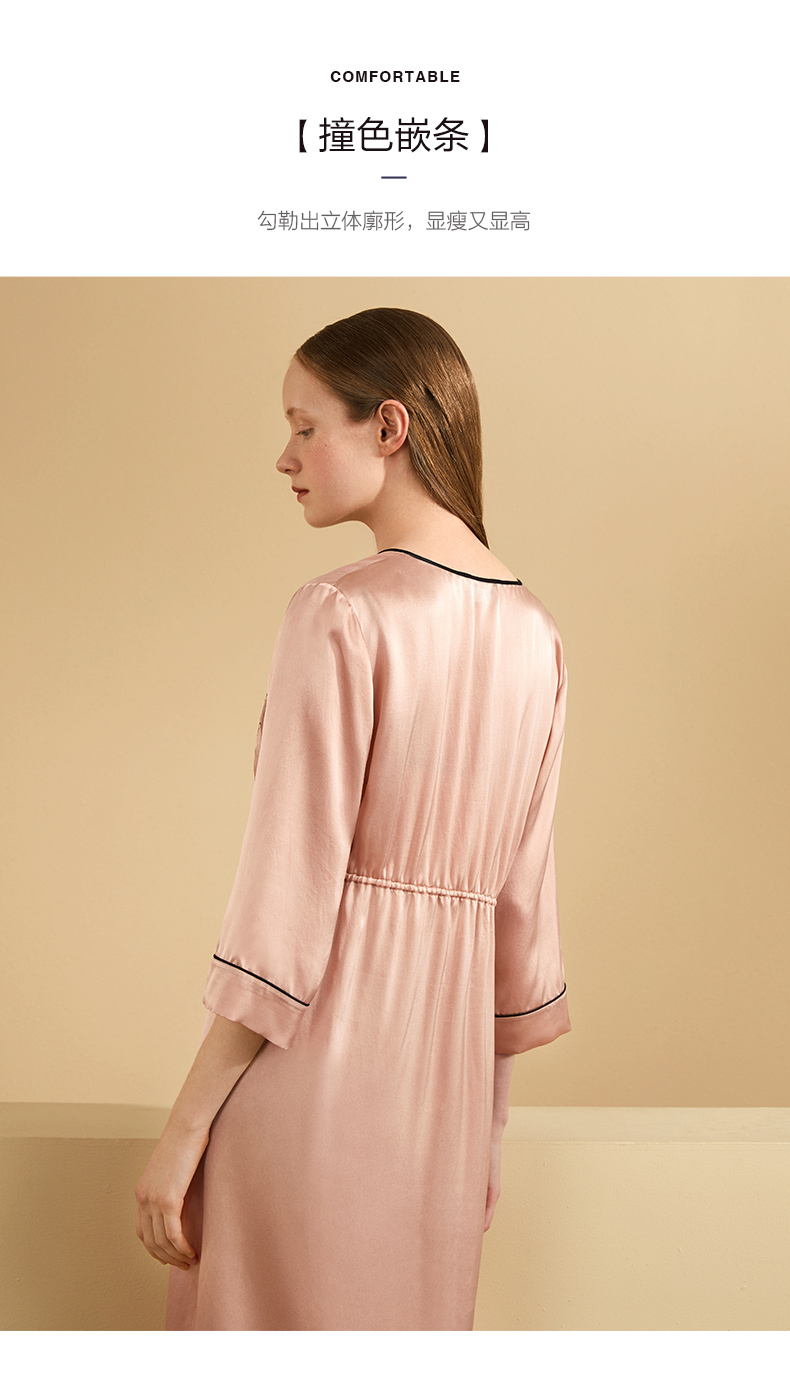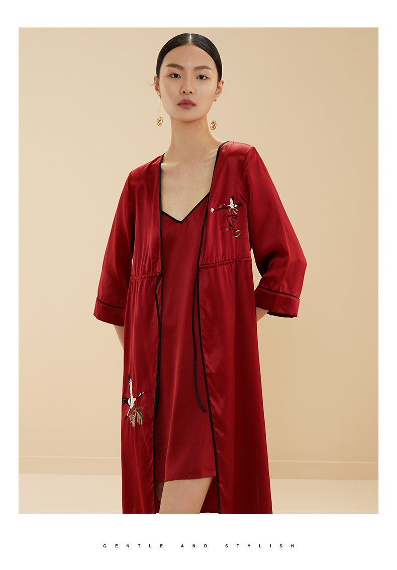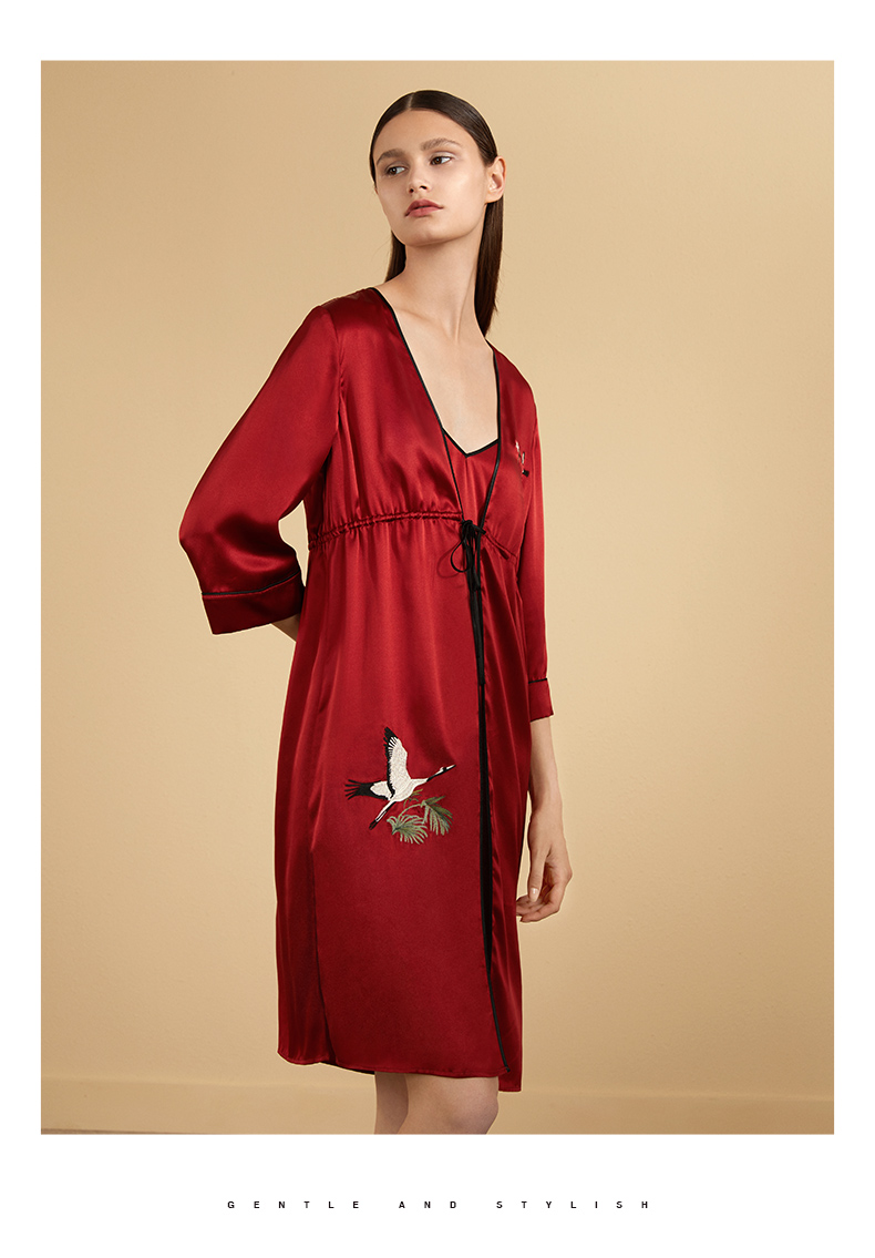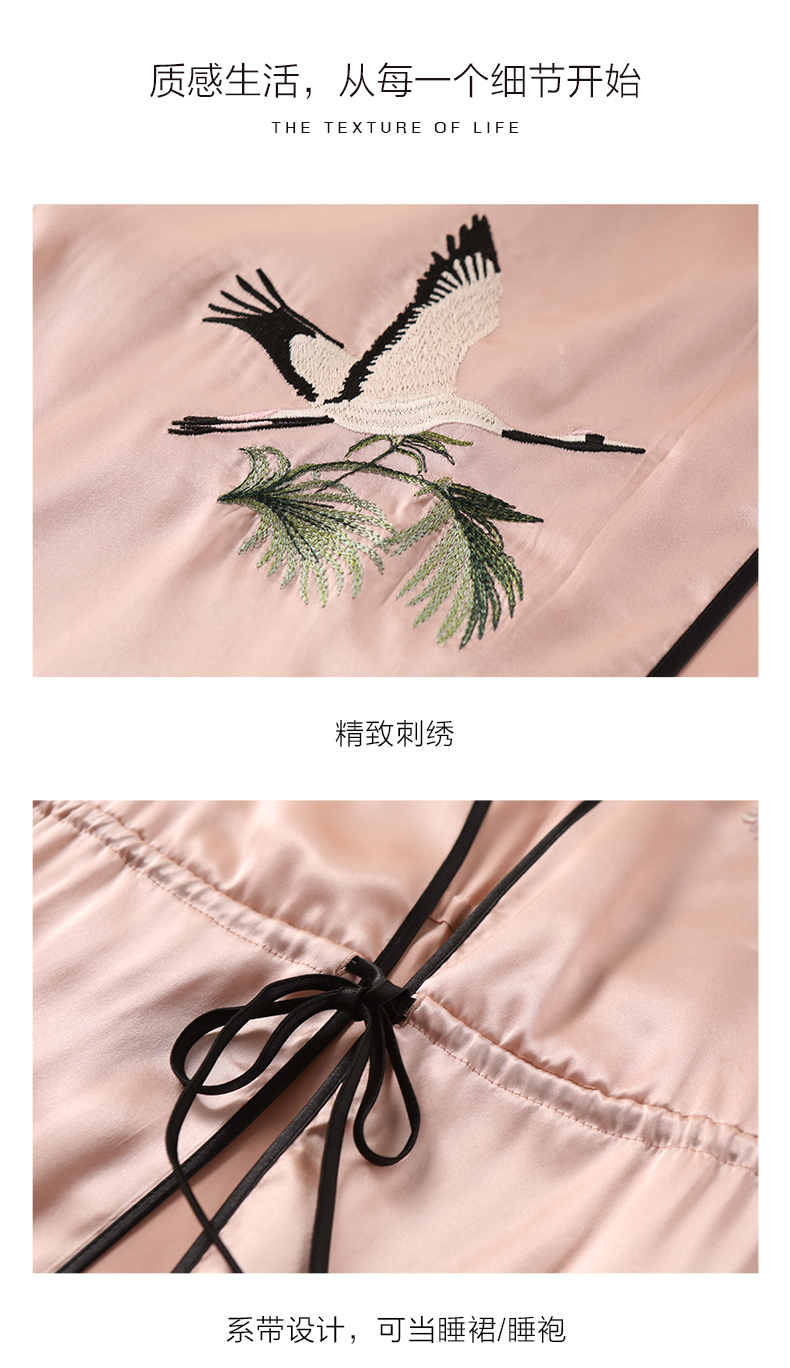 金三塔新品 真丝睡袍女100%桑蚕丝绣花可外穿睡衣家居服 YSFAC101
