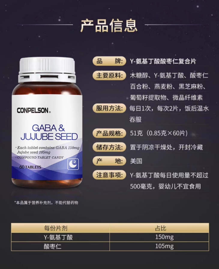 美国康普力斯氨基丁酸酸枣仁复合片