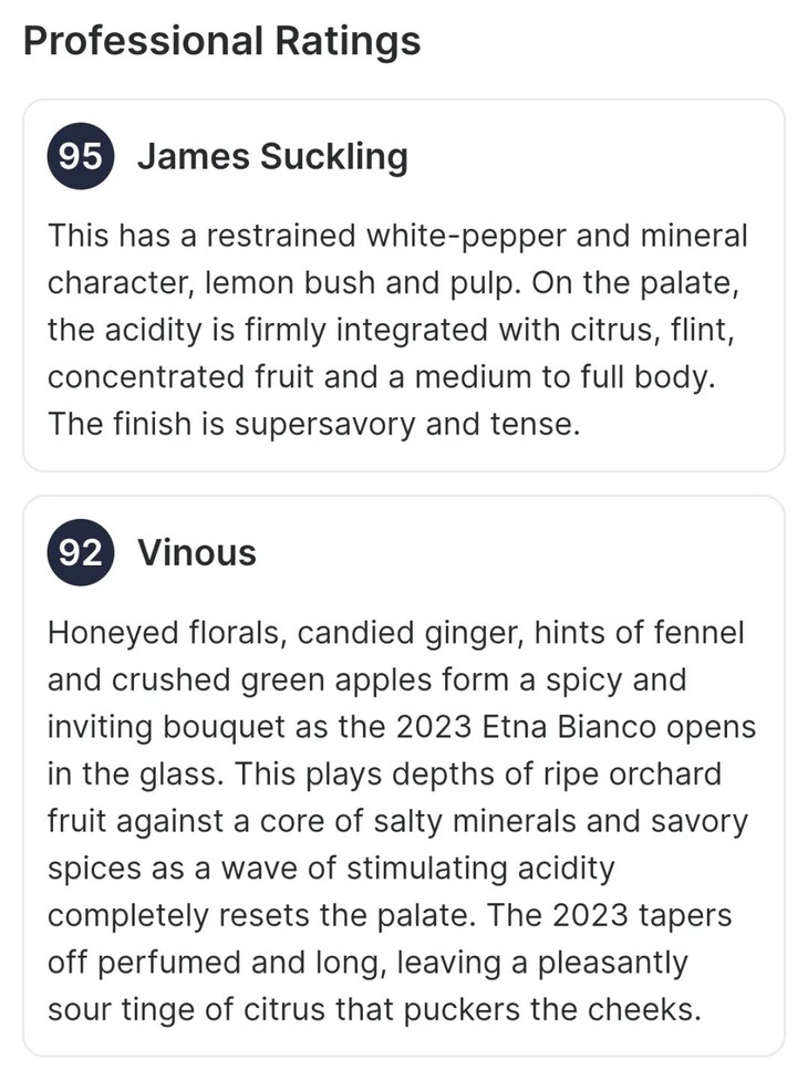 95高分年份!意大利百大第壹名庄!埃特纳火山酒庄白葡萄酒 Tenuta delle Terre Nere Etna Bianco 2023
