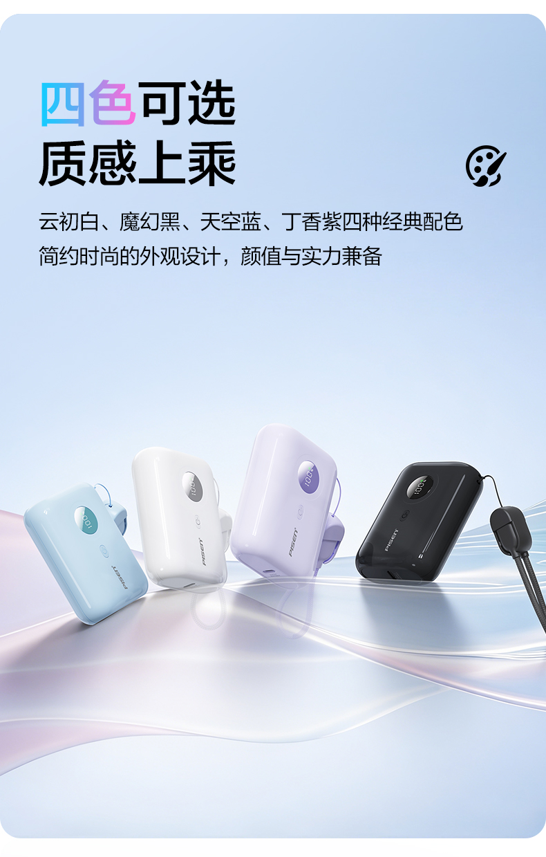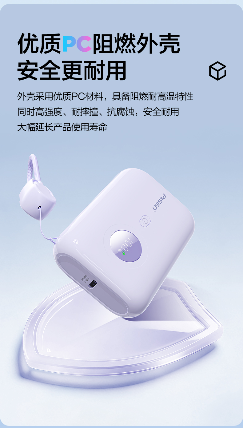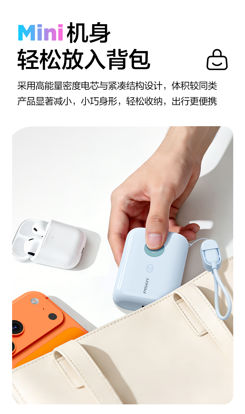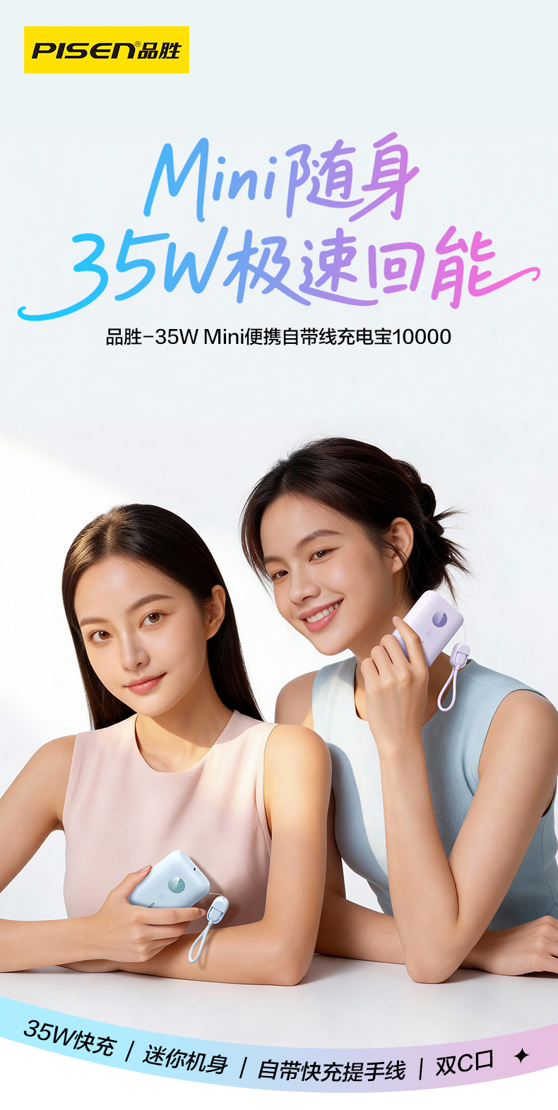 品胜35W Mini便携自带线充电宝10000毫安 自带Type-C双线输出移动电源支持快充苹果/华为/小米荣耀等设备