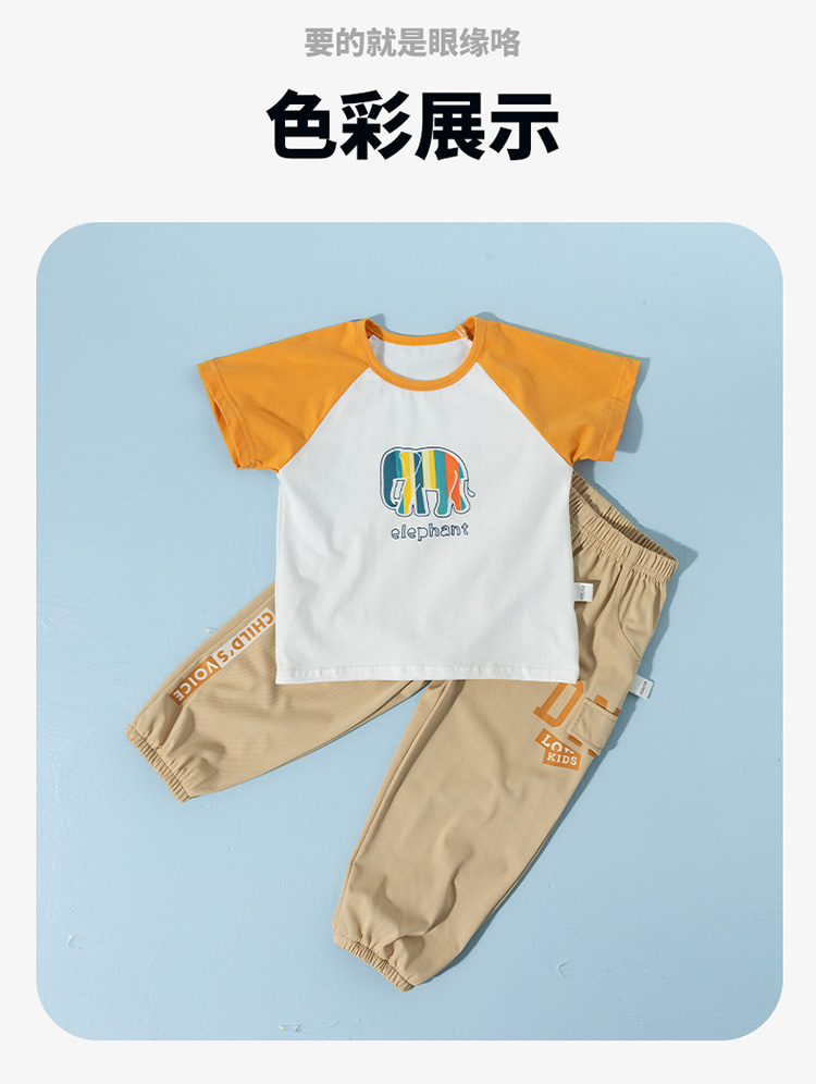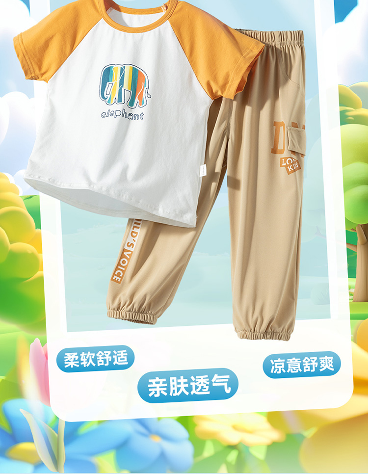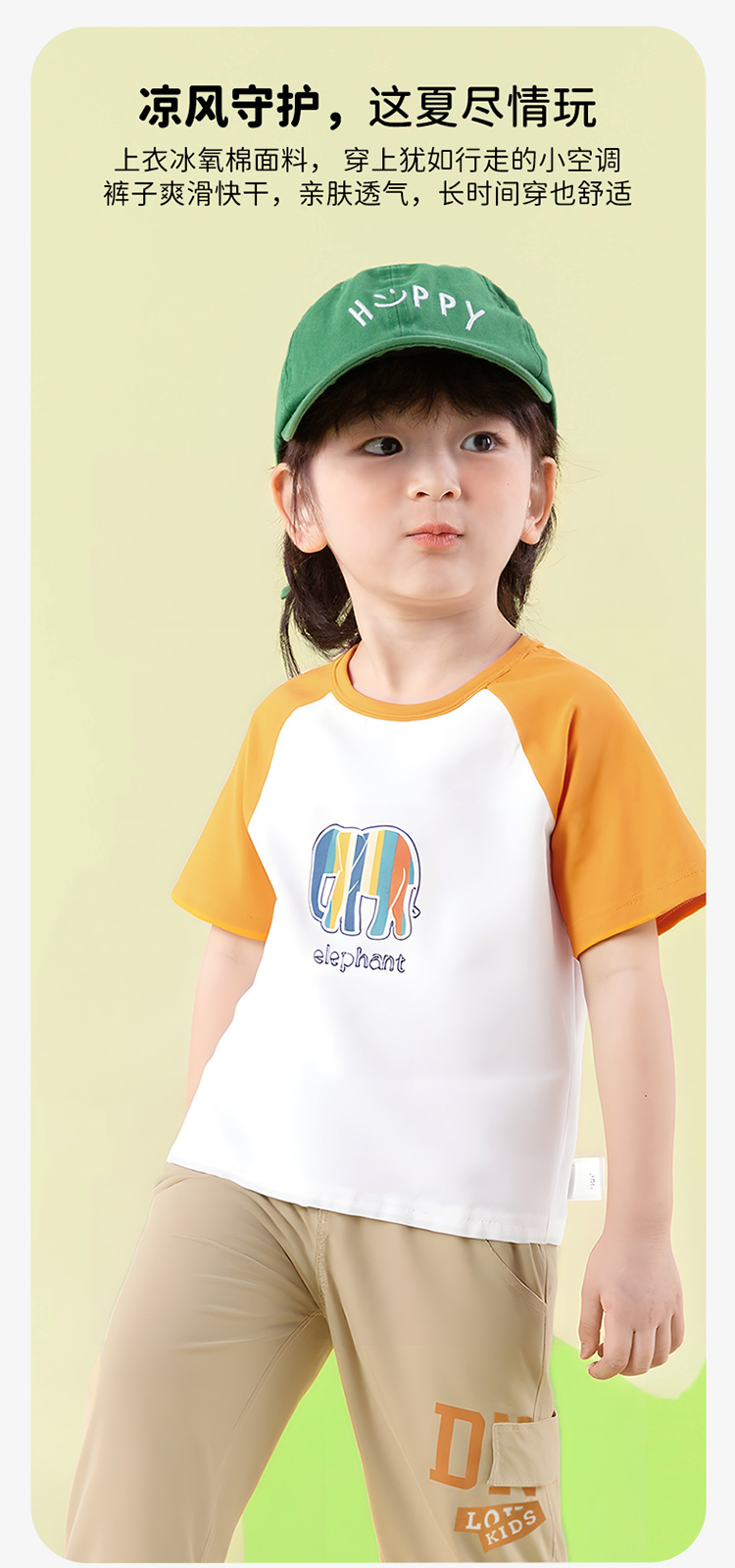 贝贝怡童装儿童短袖套装女童夏季凉爽两件套2025新款男童t恤夏装ZB2ET023