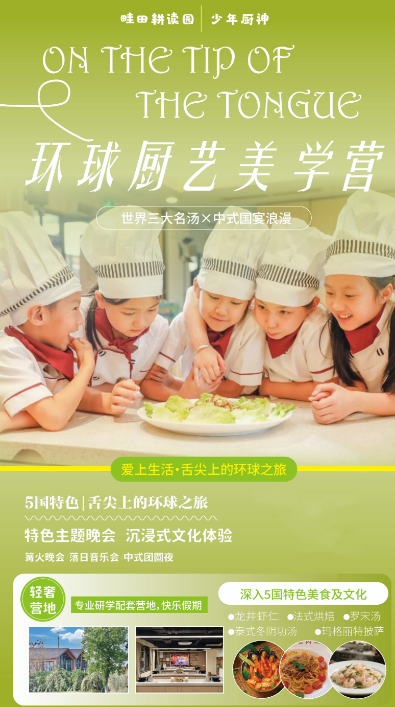 2.3-7寒假独立营【少年厨神·环球厨艺美学营】5天4夜美食营,沉浸式美食探索,化身“米其林小主厨”,解锁5国特色:中 / 泰 / 意 / 俄 / 法经典菜亲手做。