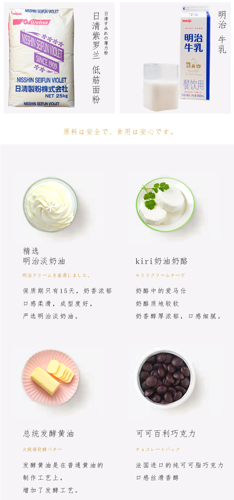 - 主理人毕业于法国蓝带东京校区——高级西点师认证 12年坚持研发高品质水果风味奶油蛋糕
