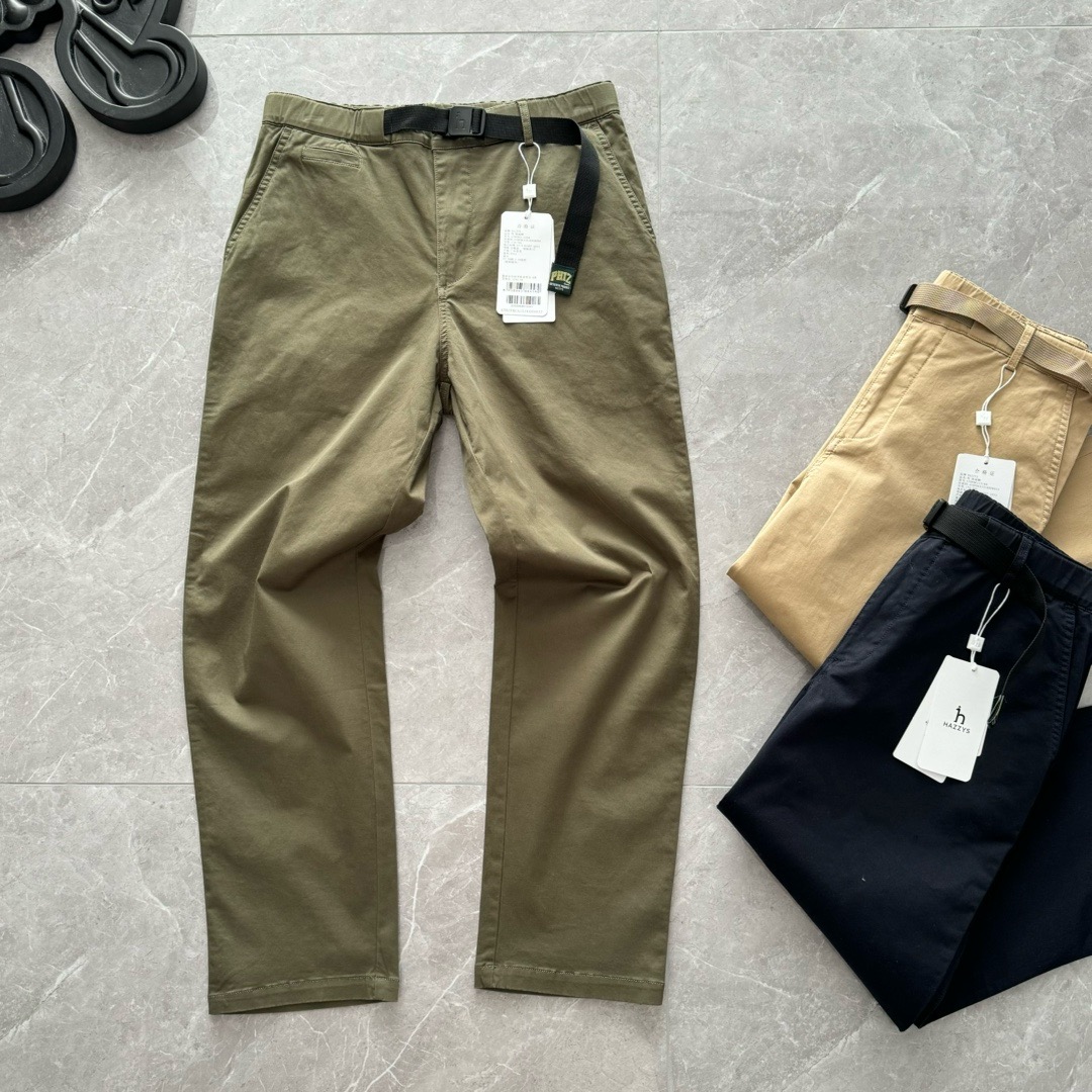 哈吉斯出口多国的订单,这批是供国内门店的货。这款裤子自带腰带卡扣和品牌LOGO