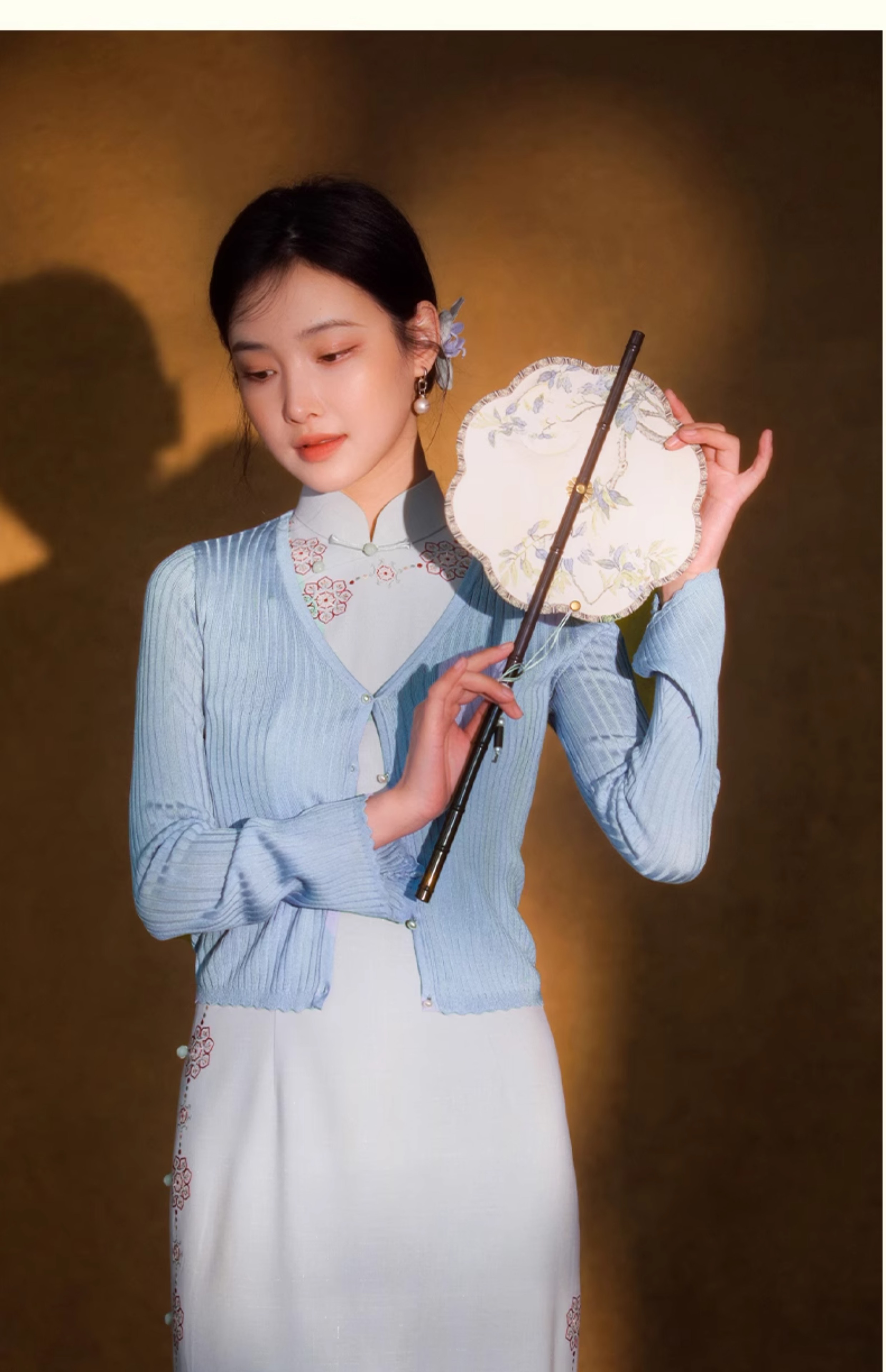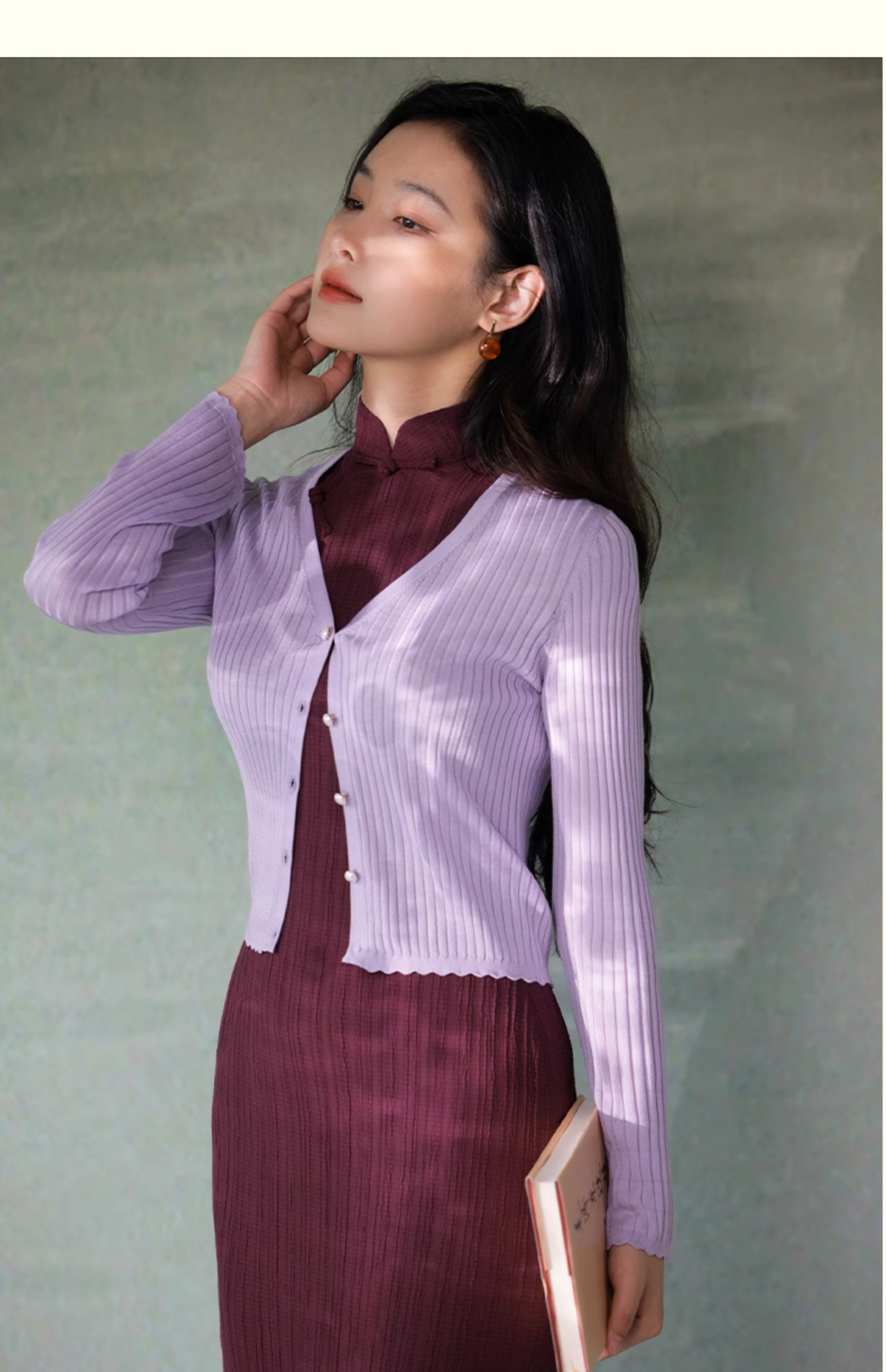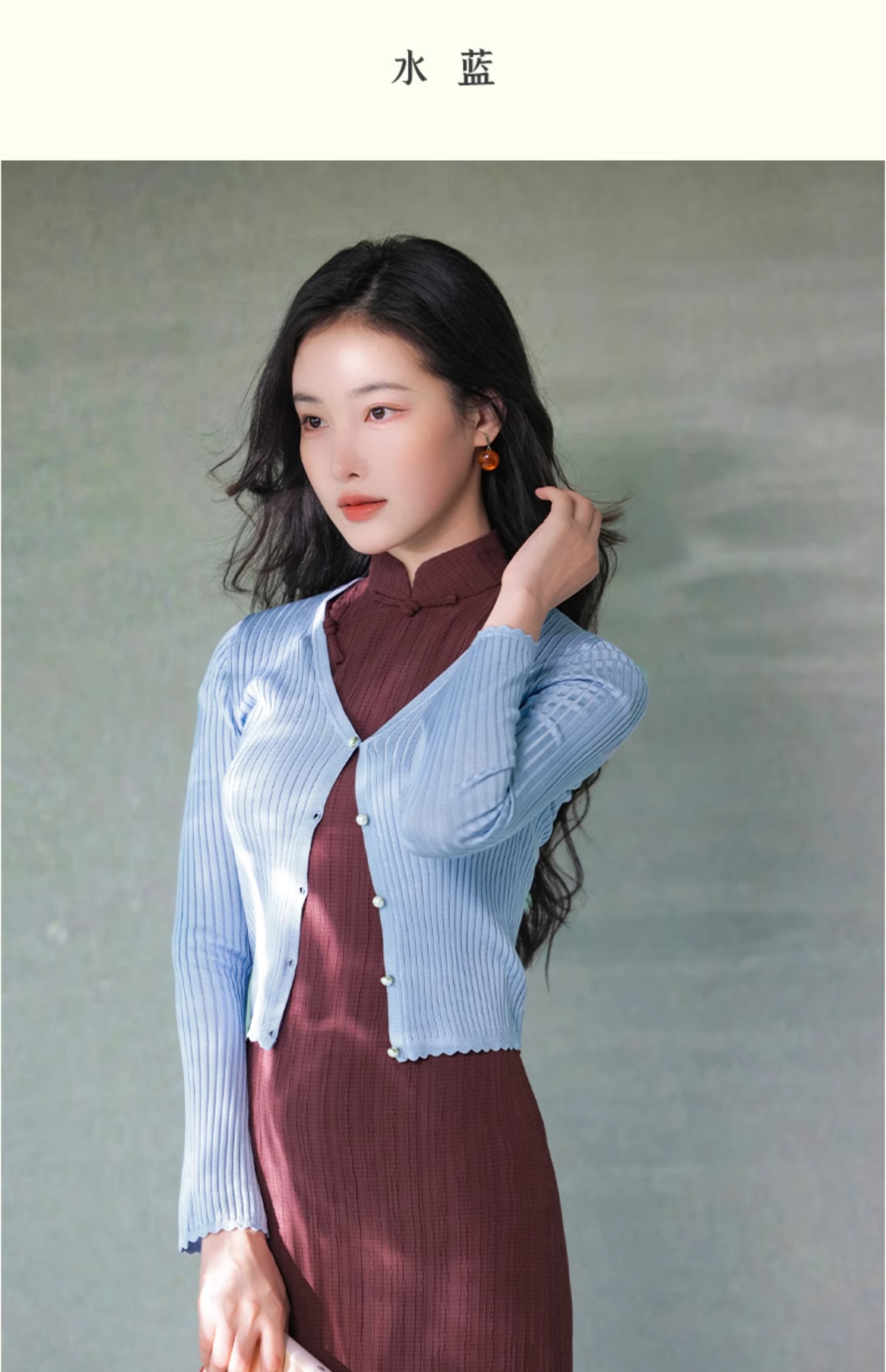逸红颜俞麦2025夏新款醋酸真丝凉感短款针织防晒衫旗袍开衫外搭女