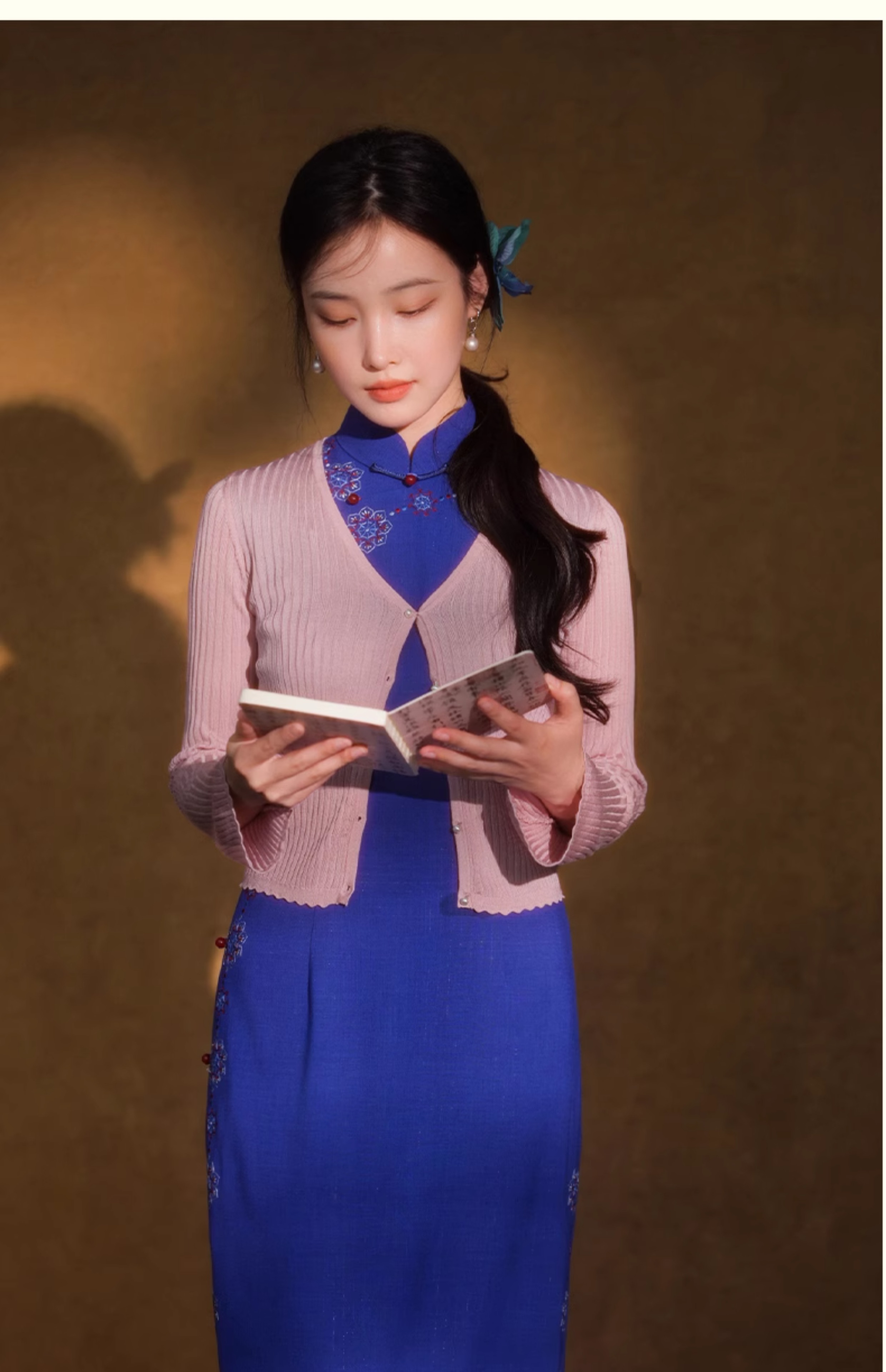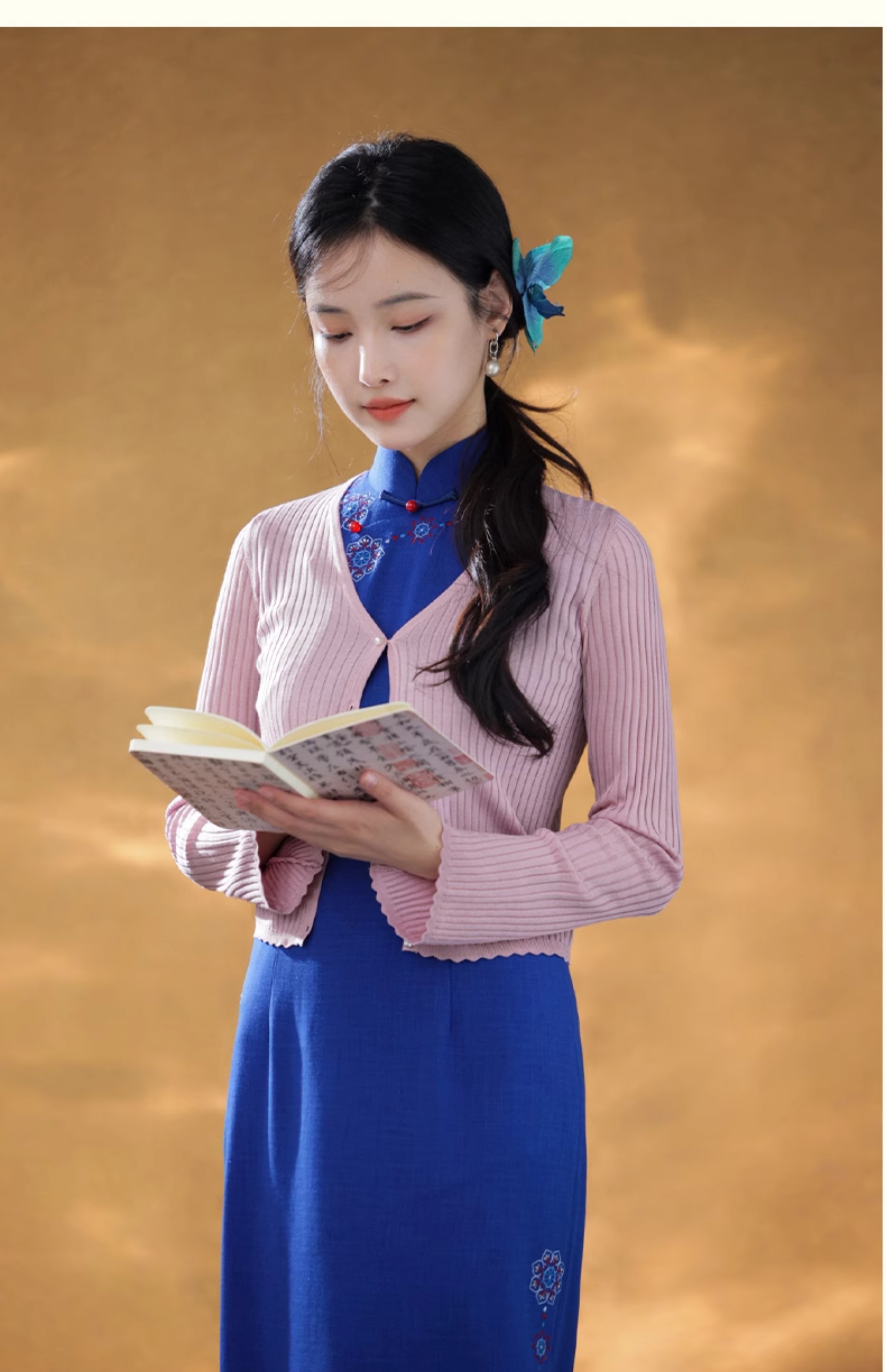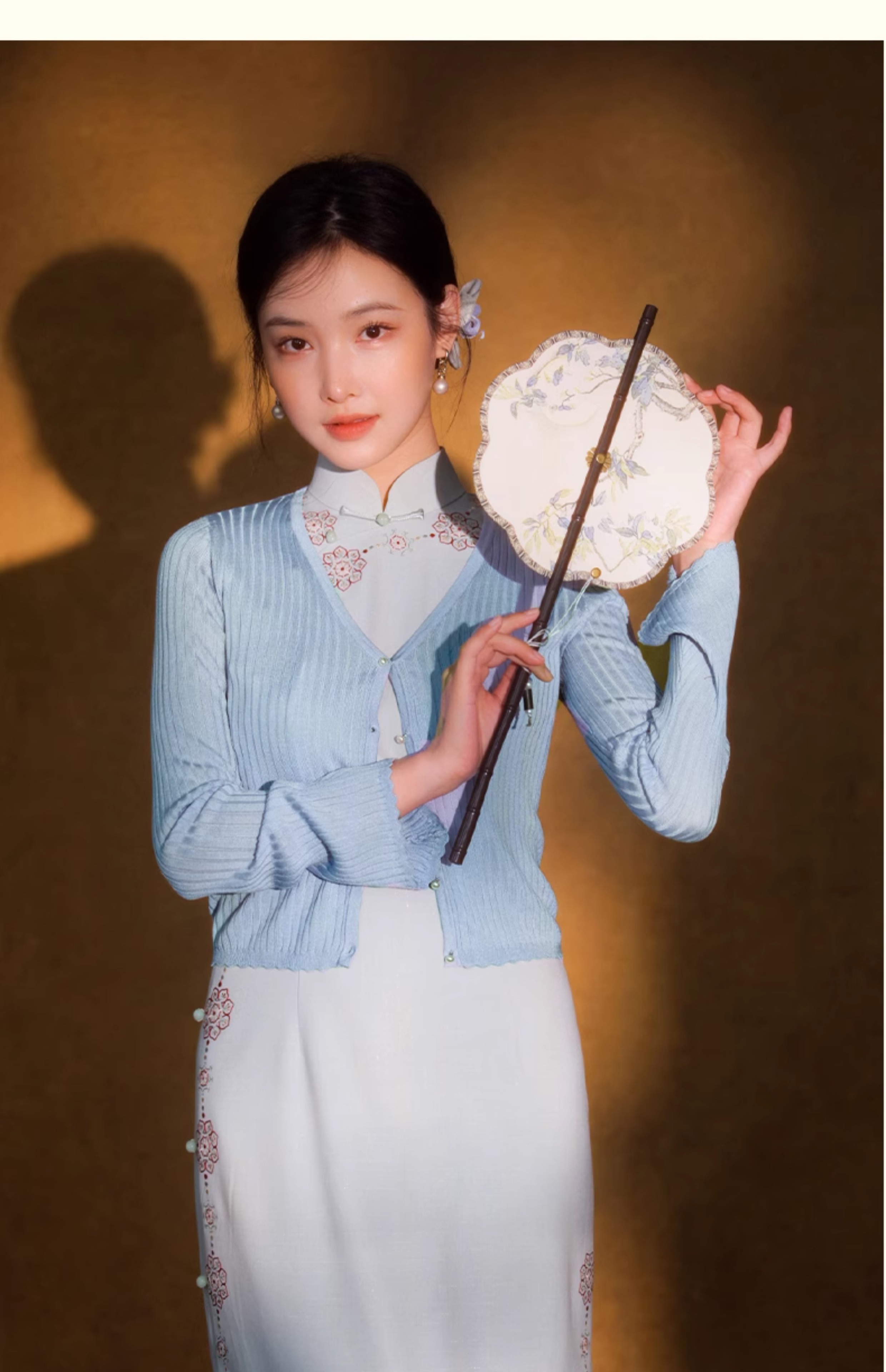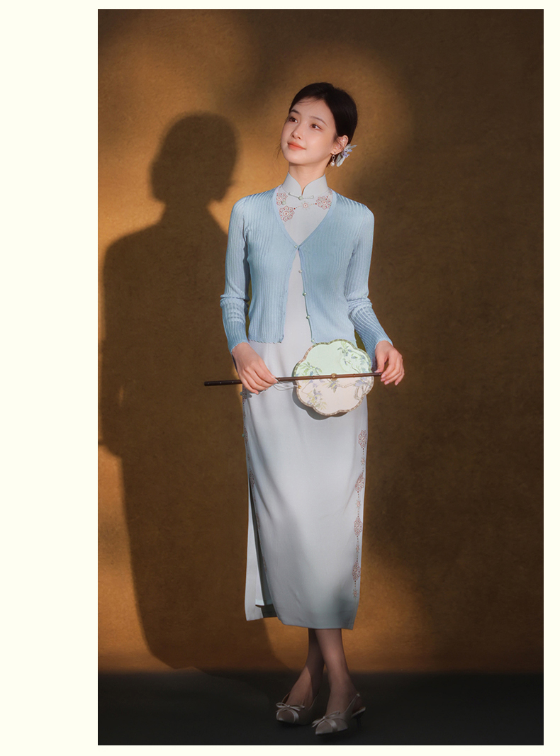 逸红颜俞麦2025夏新款醋酸真丝凉感短款针织防晒衫旗袍开衫外搭女