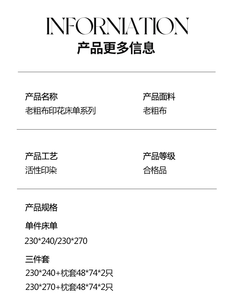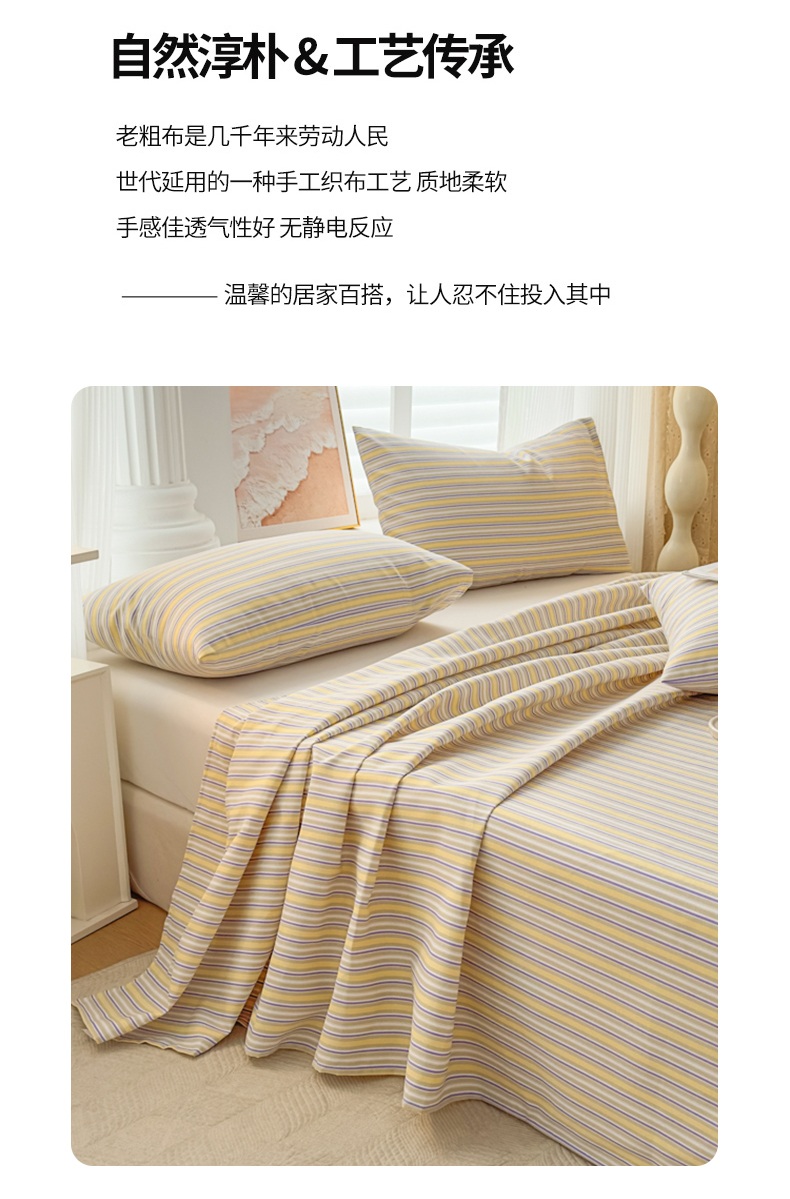 【京帝 原棉老粗布床品】质地柔软 透气性好 无静电反应 持久耐用 手感细腻 柔棉吸湿 透气不闷汗 不易变形 不易起球